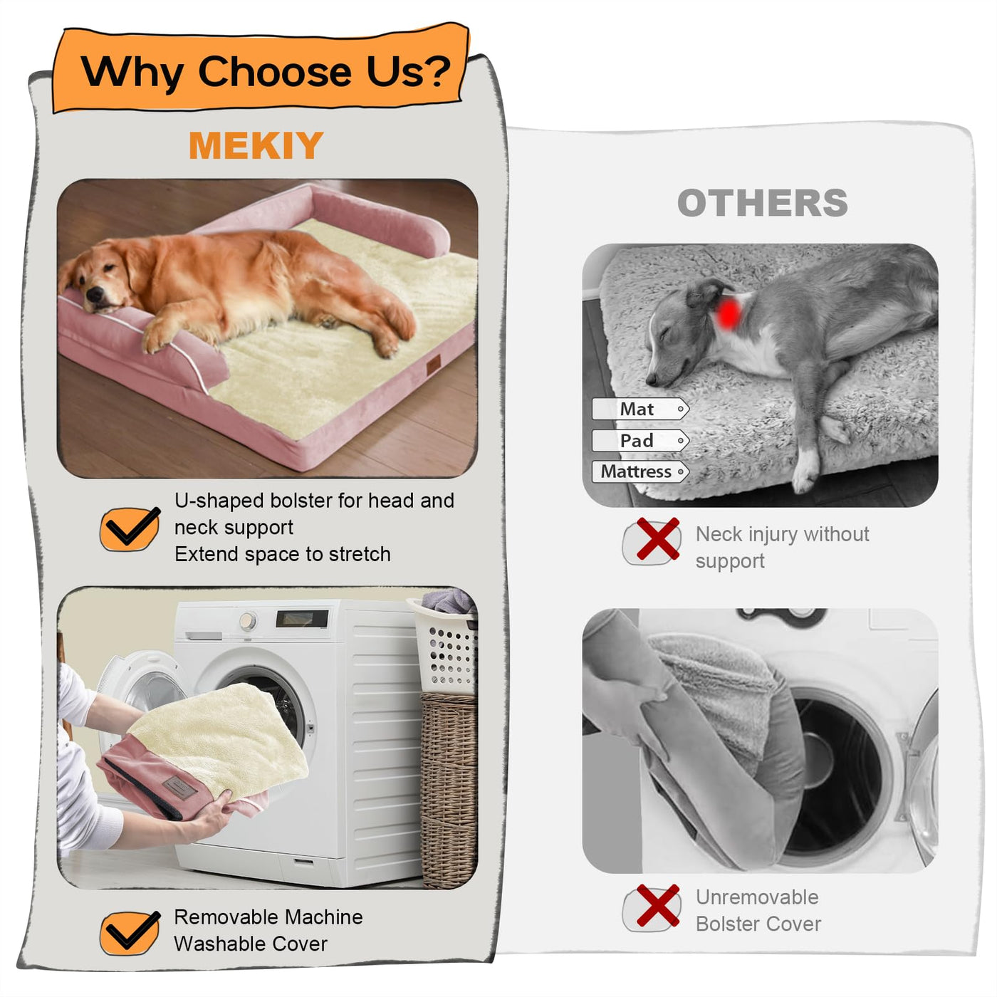 Q: Is the bed supportive for older dogs with joint issues?A: Yes, this orthopedic dog bed features advanced internal egg crate foam that provides excellent support, helping to alleviate muscle and joint pain for older dogs.