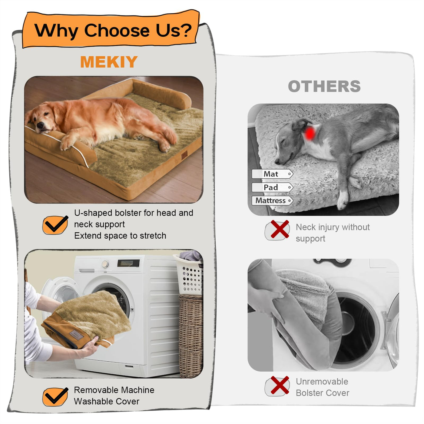 Large Dog Bed Orthopedic Washable, Orthopedic Dog Beds For Large Dogs With Washable Cover, Removable Bolster And Non-Slip Bottom Orange Large Dog Beds, Xl Xlarge Extra Large Dogs