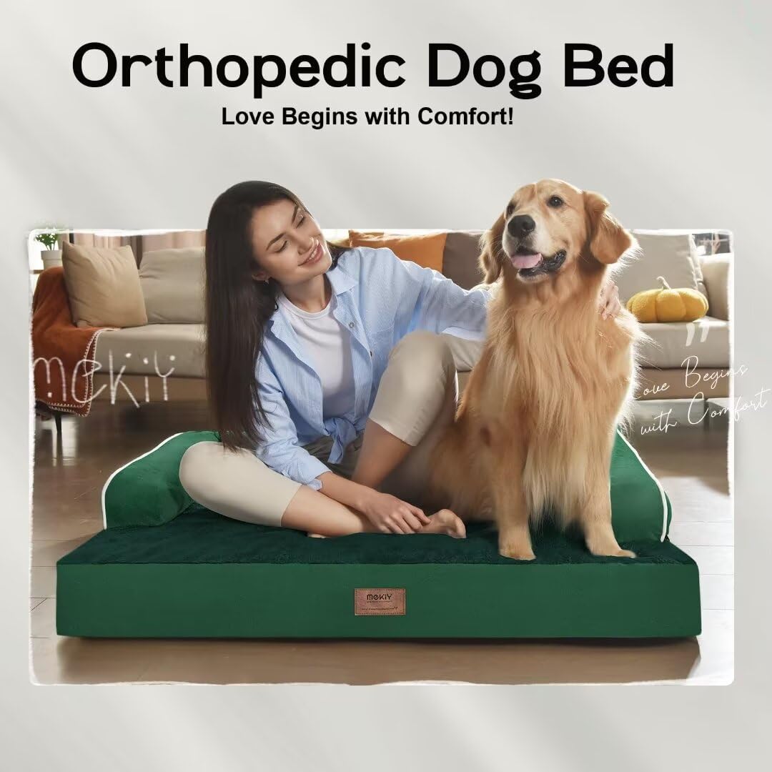 Large Dog Bed Orthopedic Washable - Waterproof Removable Cover - Medium Xlarge Big Dogs - Egg Foam Couch - Emerald Dog Beds Bolster With Sides