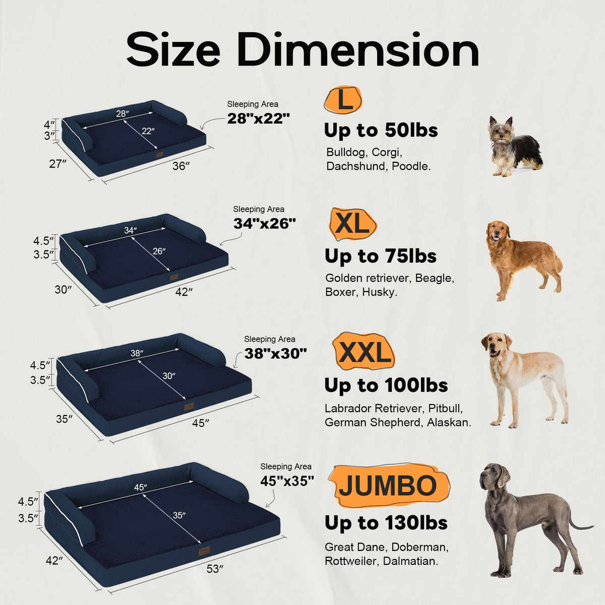 Large Dog Bed Orthopedic Washable - Waterproof With Removable Cover - Memory Foam - Beds Bolster Pet - Couch Sofa - Xxl Large Big Dogs - Navy Blue Dog Bed