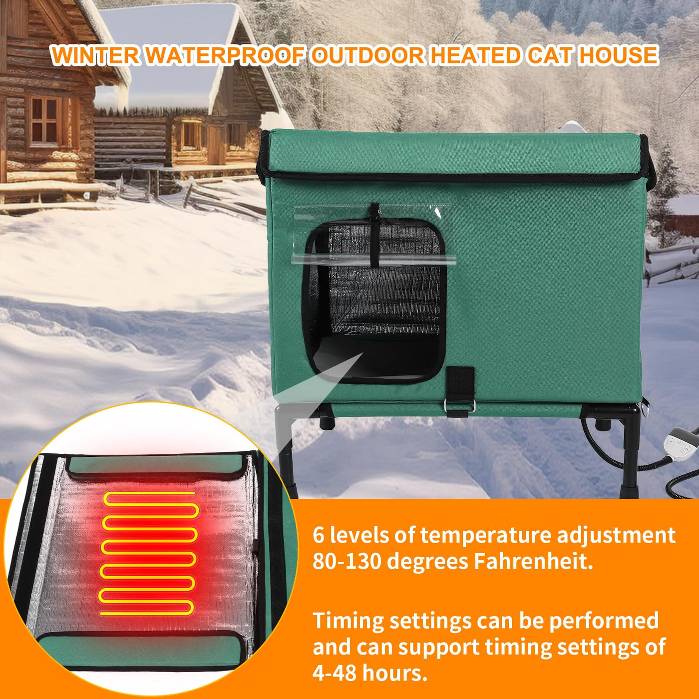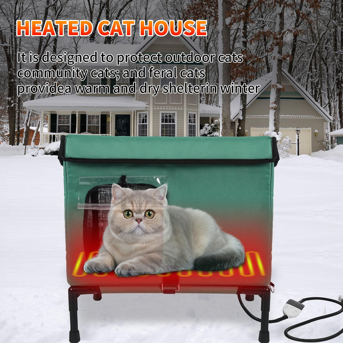 Large Heated Cat House For Outside With Pet Heating Pad Bed