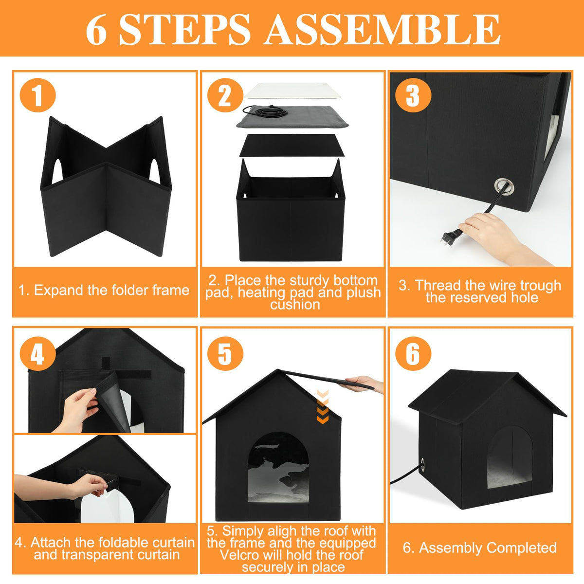 Large Heated Outdoor Cat House Double Door Heated Cat Shelter, Weatherproof Foldable Heat Kitty House With Cat Heating Pad Bed F