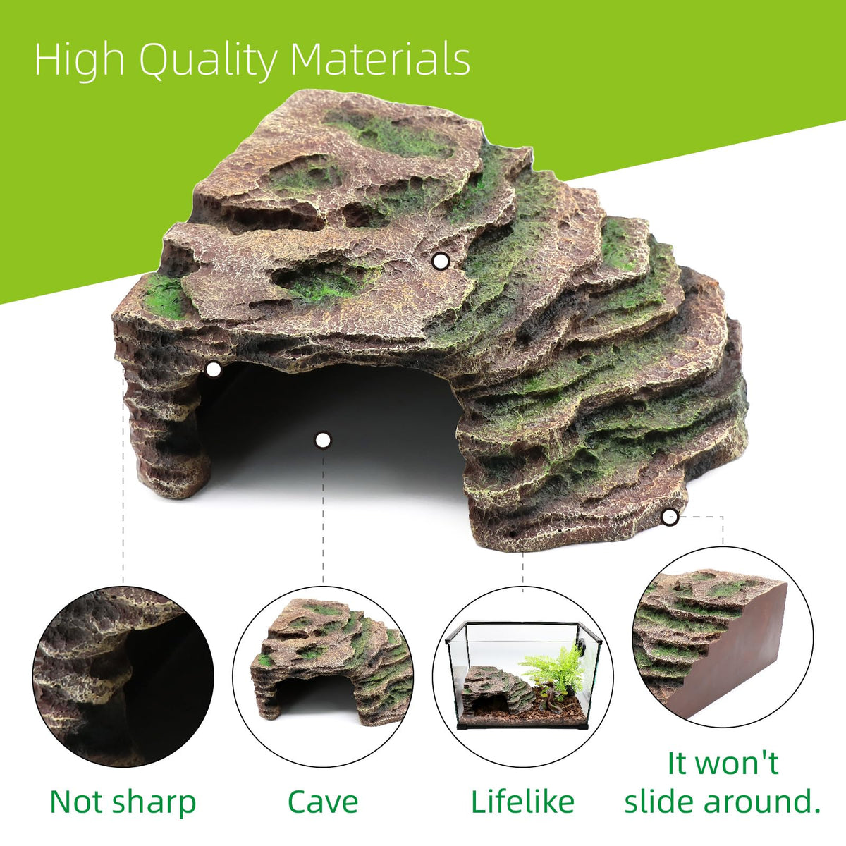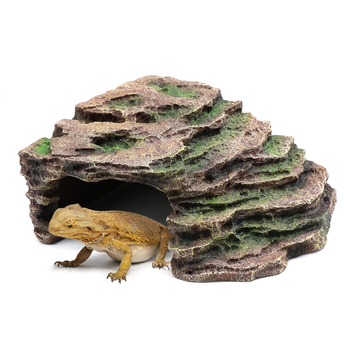 Large Reptile Hide Shale Scape Step Ledge, Reptile Cave Hideout, Bearded Dragons Accessories, Basking Rocks for Bearded