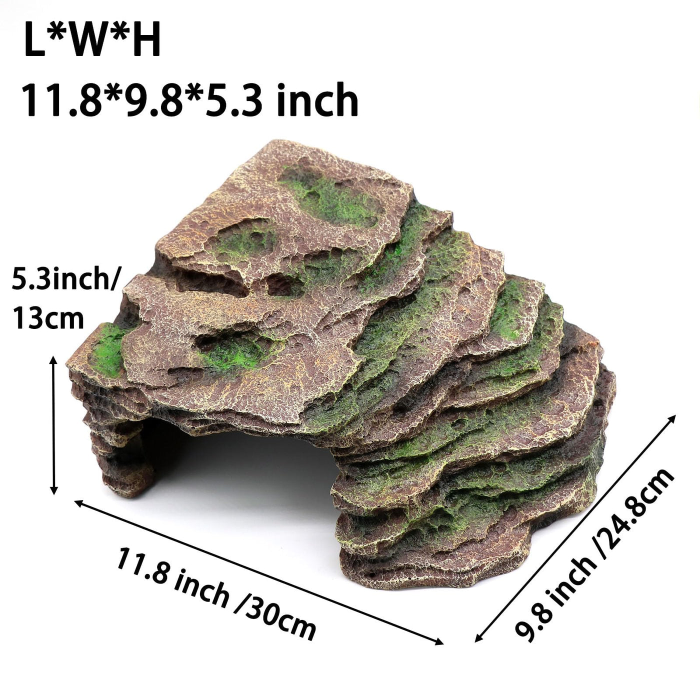 Size.Reptiles Cave Hideout 11.8 x 9.8 x 5.3 inches(LxWxH)Specification.- Material::Resin- Color:As shown- Weight.:1.3kg Package includes.- 1 * Bearded Dragons Basking Platform Heavy material keeps the hide from moving for easy cleaning. The natural look of rock formation blends easily in the fish tank and reptile terrarium. Cautions.1. Since they are made of resin, please rinse and soak the resin bark for 10-15 minutes before use to give them a more realistic appearance. 2. Due to manual measurement, please allow 1-3 cm error. Please make sure you dont mind before bidding.3. Due to differences in different monitors, the pictures may not reflect the actual color of the item. Thank you for your support!