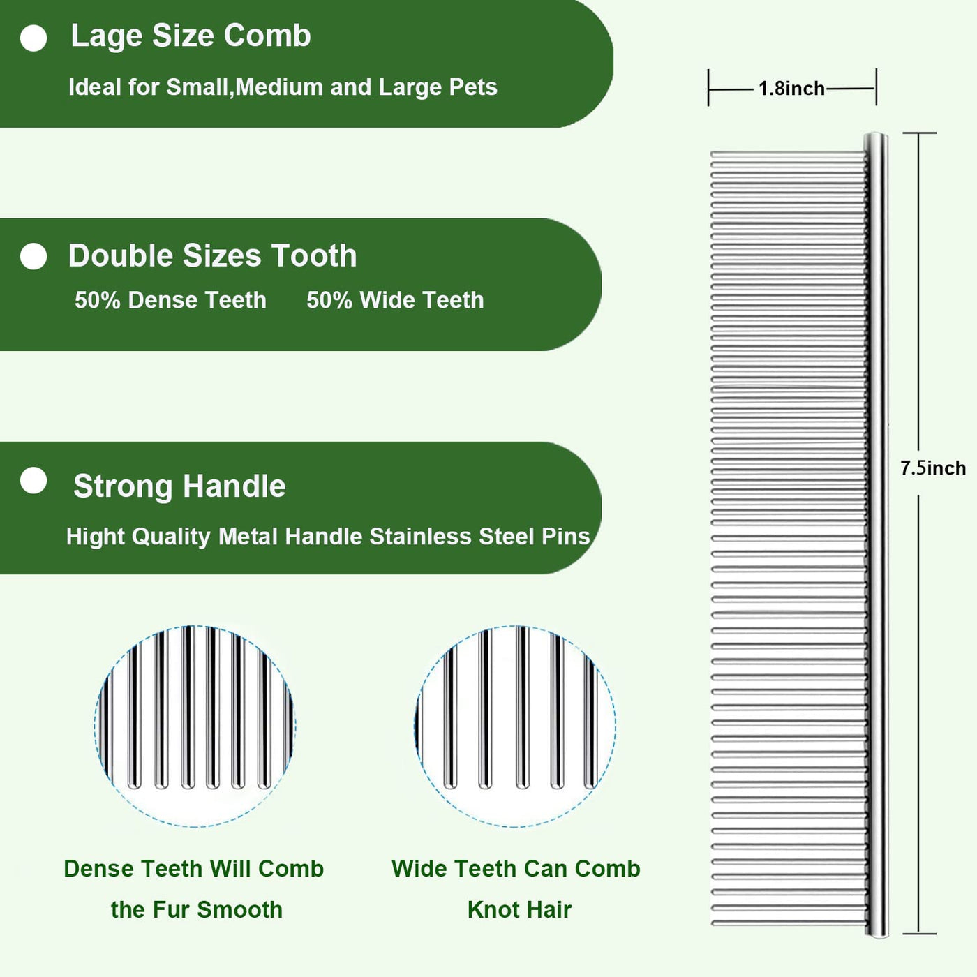 Large Slicker Dog Grooming Brush Kit - Ergonomic Wooden Handle, Long Pins For Goldendoodles, Poodles, Doodles & Haired Dogs (Gre