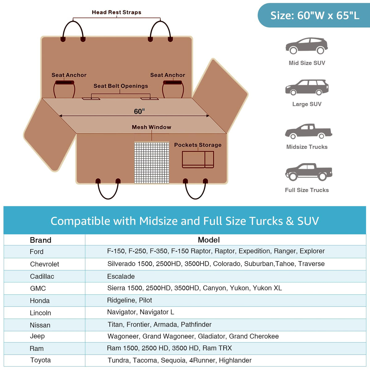 Lassie XL Truck Dog Seat Cover Back Seat, Dog Car Hammock for Large SUV and Trucks Compatible with F150 F250/Chevrolet Silverado