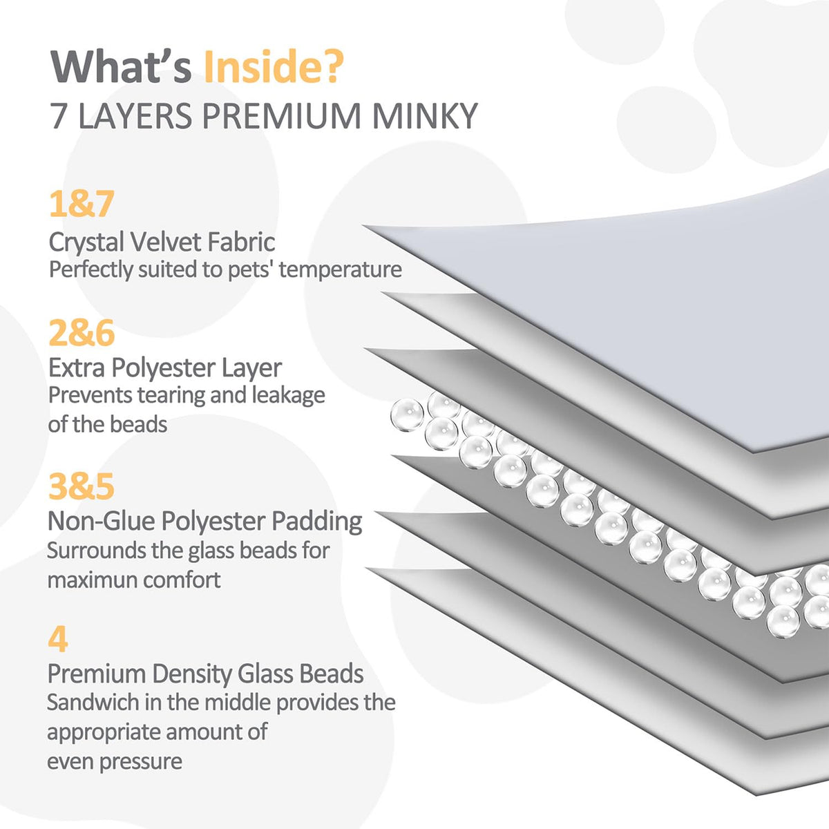 Q: What materials are used in the LaSyL weighted blanket?A: The LaSyL weighted blanket is made from premium soft minky fabric, ensuring comfort and coziness for your pet. It is designed to withstand wear and tear, providing long-lasting use.