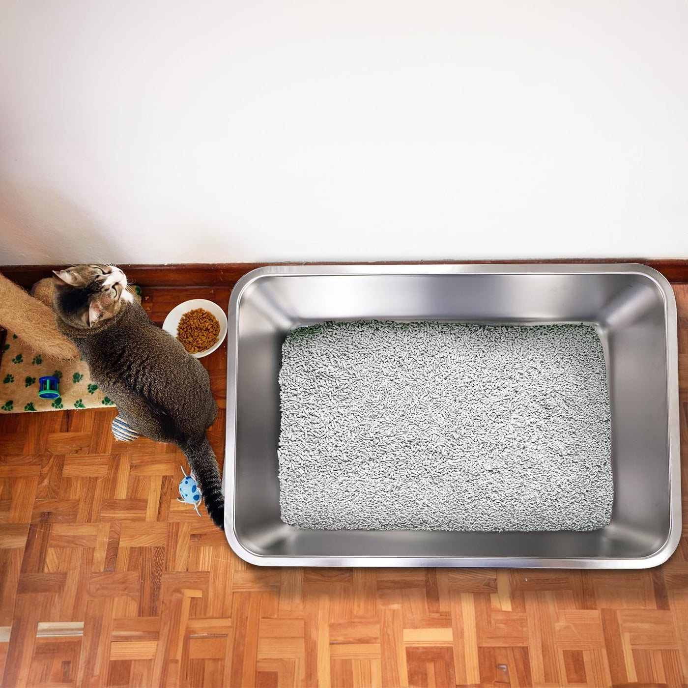 Lawei Open Cat Litter Box With High Sides Designed To Keep Litter From Scattering And Spraying Outside The Box, Meaning Less Cleanup For You And Less Litter Or Pellets Wasted. Our Stainless Steel Litter Box Is Perfect For A Variety Of Pets Size, Including Big Adult Cats, Small Kitty, Rabbits, Ferrets, Snakes, And More.
