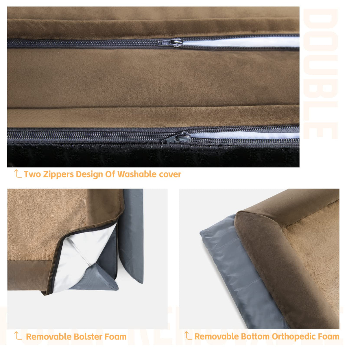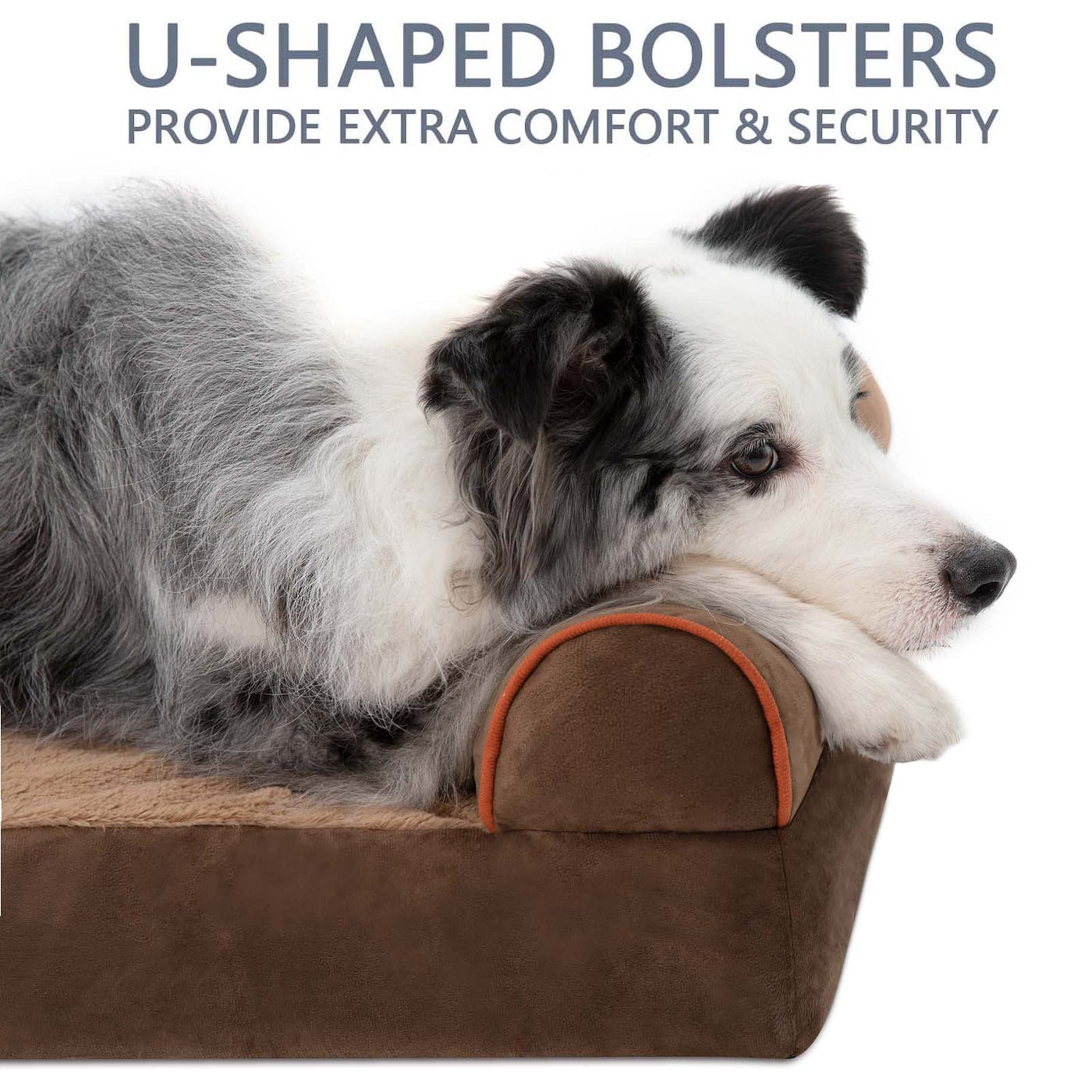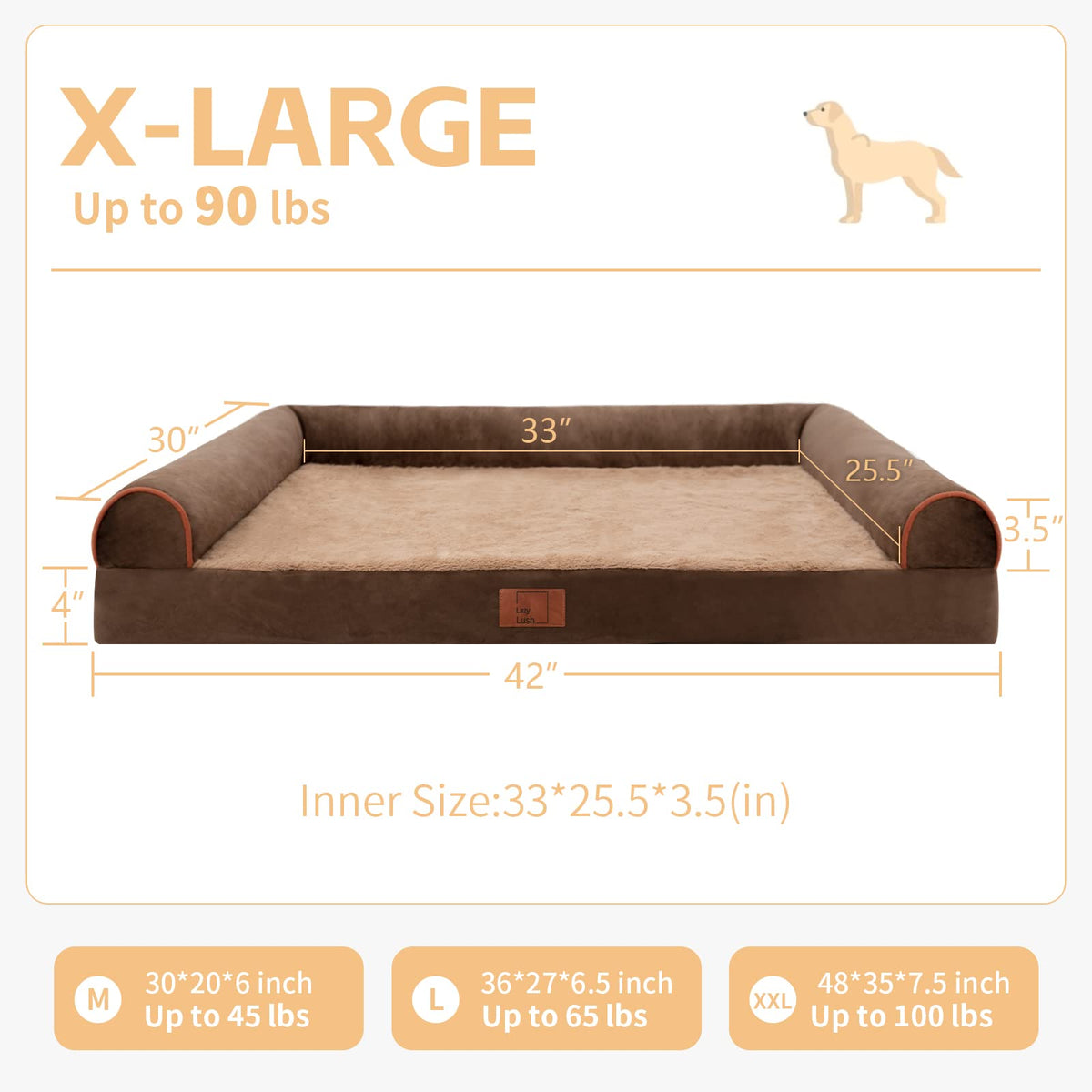 Lazy Lush Orthopedic Dog Sofa Bed 6.5'' Raised Bolster Pillow U-Shaped Bolsters Fits Perfectly For Your Dog'S Head And Arms And Effectively Relief Pet'S Cervical Spine Problems. Shredded Memory Foam Filling Offers Ultimate Support And Is Not Easy To Deform. Snuggly Plush Sleep Surface Plush Faux Fur Fabric On The Sleeping Surface Complement With A Downy Micro Velvet Fabric Cover To The Sides And Bolsters Gives The Dog Couch A Luxuriously Soft Touch. Both Fabrics Are Gentle On Noses And Paws And Prevent Shedding. Egg Crate Orthopedic Foam Base The Orthopedic Foam Offers Great Support To Joints And Bones, Brings Extra Comforts To Your Pet. Egg Crate Foam Design Largely Improves Air Flow That Gives Your Furry Friends A More Restorative Night'S Rest. Ideal Gift For Older Or Arthritic Dogs. Non-Skid Bottom Anti-Skid Bottom With Rubber Studs Keep The Dog Bed Stay In The Right Position To Ensure Your Paw Friends Safe When They Step On And Off. Waterproof Inner Coating Lazy Lush Dog Bed Is Coped With Waterproof Coating That Helps You In Handy In Case Of Any Accidents. Sizes & Dimensions Lazy Lush Orthopedic Pet Sofa Bed Is Available In Multiple Size Choices To Accommodate Large Dog Breeds. Medium: 30'' X 20'' (3 Foam Base) Large: 36'' X 27'' (3 Foam Base) X-Large: 42'' X 30'' (4 Foam Base)