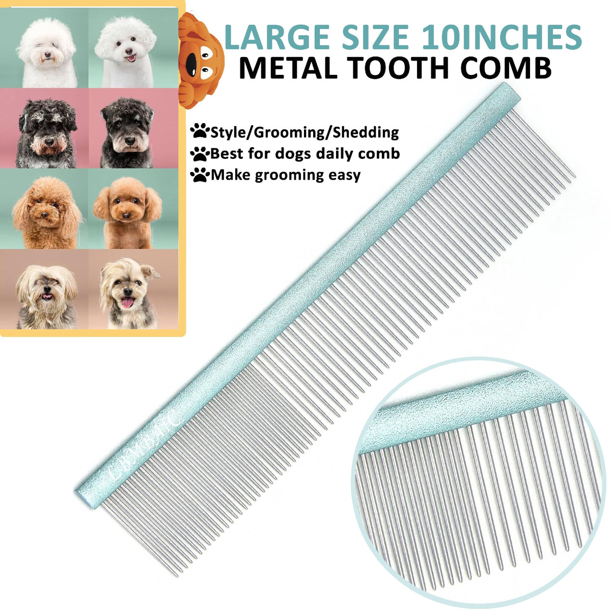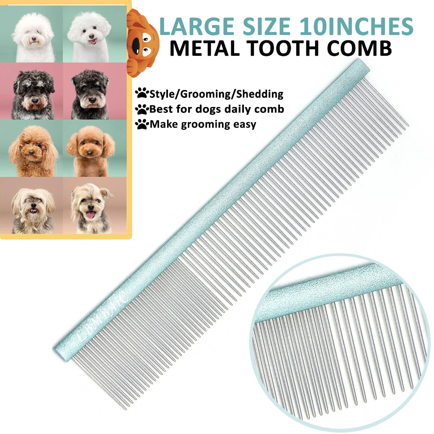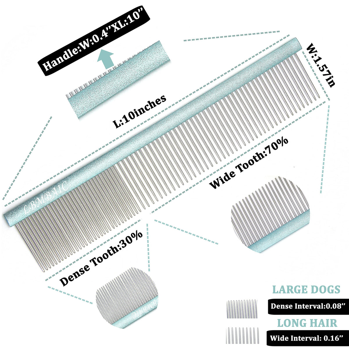 Lbmbaic 10Inches Large Dog Grooming Comb For Shedding Matted Hair For Large Dogs Metal Dog Comb With Long Wide Tooth Comb For Poodles And Goldendoodles Reduce Tangles,Mats And Knots.(Blue)