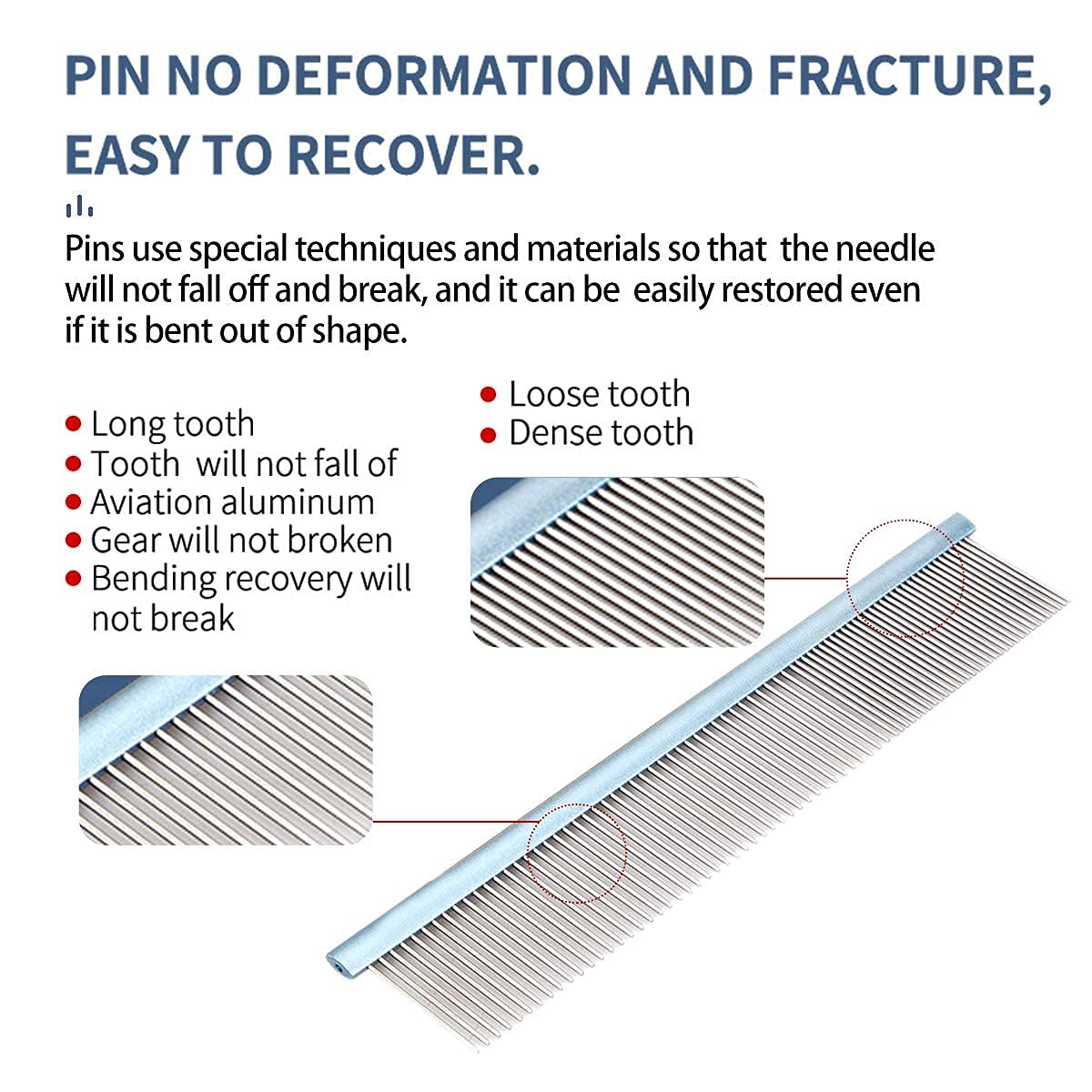 Products Feature: colorful Ergonomic design aluminum oval handle Round smooth steel teeth Aluminum material with light weight 50 Wide and 50 Narrow spacingDouble sides use clean and complete products package Function: 100 Safe greyhound comb will not hurt Pets skin Very Effective at removing up to 70-80 tangled coat Suitable for Professional pet groomer use also Suitable for long hair Dogs and cats good quality for durable use Quality commitment: No Rust corrosion No Lose color Non-Defrmation Faster and Efficient delivery service Support refund and return service 24hours online customer service iDONT HESITATE TO cHOOSE A PROFESSIONAL gROOMINg cOMB TO gIVE YOUR PETS A BEAUTIFUL NEAT LOOKLETS DO ITi
