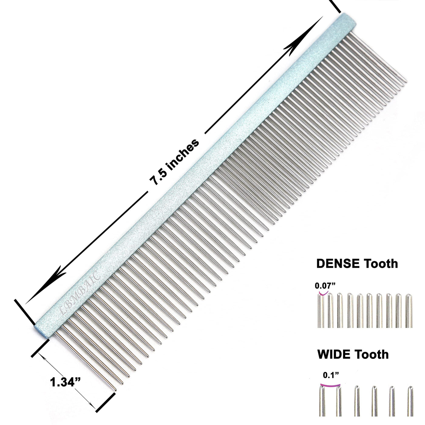 Lbmbaic Professional Dog Grooming Comb For Shedding Tangles,Knots,Mats.Metal Dog Comb With Long Wide Tooth Comb For Long Hair Dogs And Cats.No Hurt Pets Skin.7.5Inches.(Blue)-1Pc