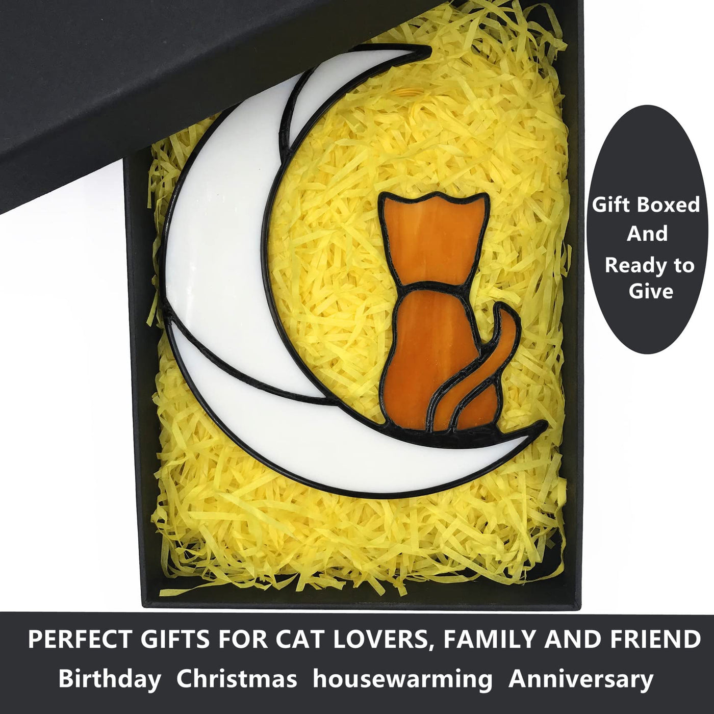 Stained Glass Cat Suncatcher Is Made From Several Types Of High Quality Art Glass, That Differs By Transparency, Texture And Shades In The Tiffany Technique. All Of Our Works Are Handmade. As A Result Texture Of The Actual Product May Be Slightly Different Due To Differences In Art Glass. It Can Give Gifts To Pet Lost Gifts, Cat Lovers, Mother'S Day, Birthday, Father'S Day, Christmas, Teacher'S Day, Valentine'S Day And Cat Memorial Gifts.