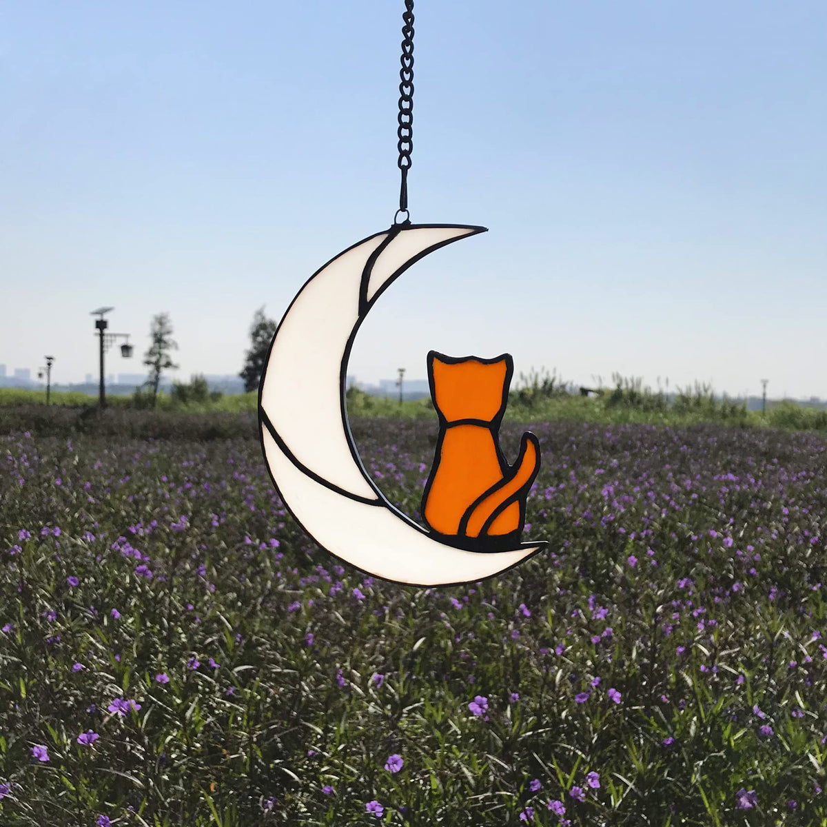 Lcensp Orange Cat Glass Ornament For Cat Lovers, Tabby Cat Memorial Gift, Hanging Cat Suncatcher Decor For Window, White Moon De