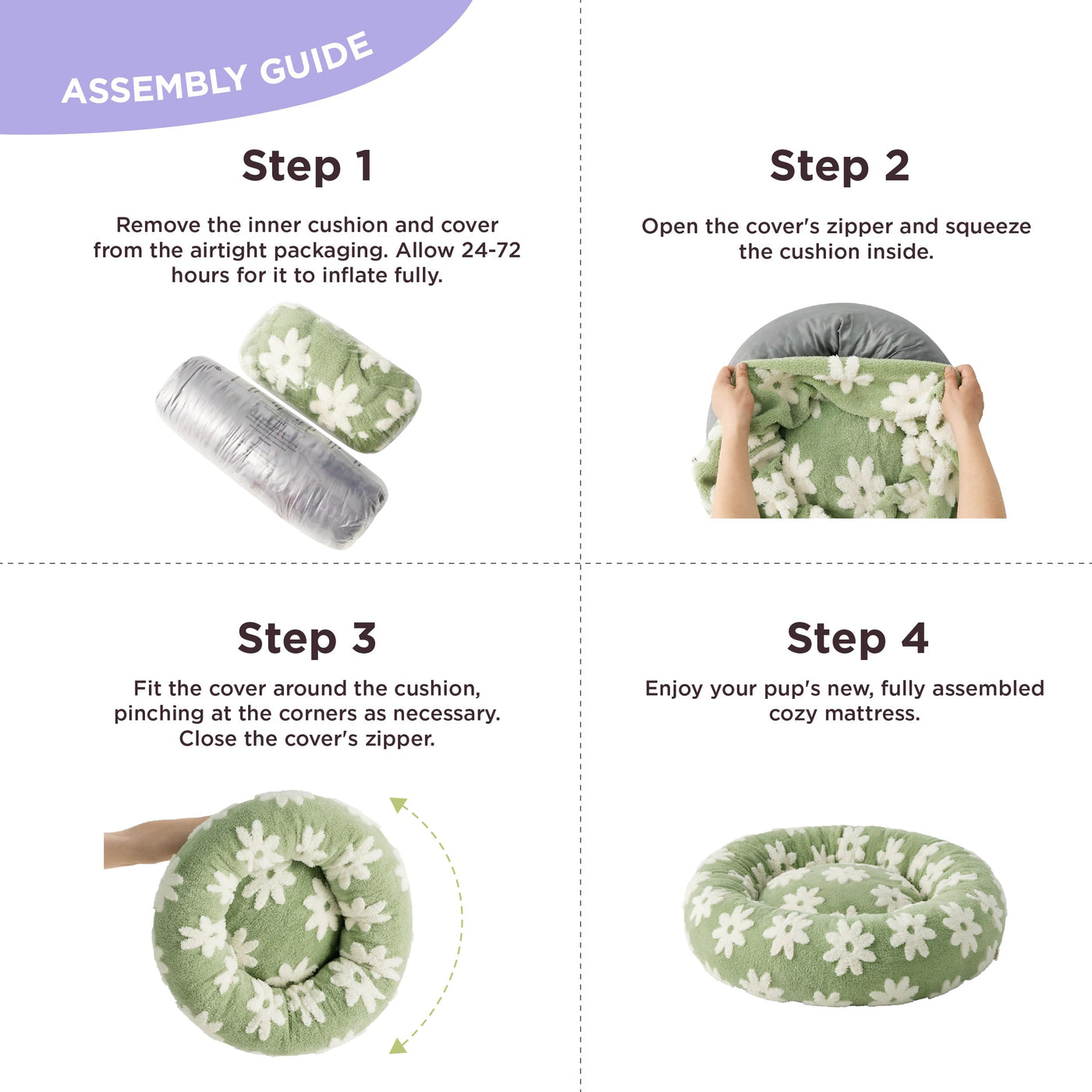 Lesure Donut Small Dog Bed - Round Cat Beds For Indoor Cats Calming Pet Beds, Washable Cute Modern Beds With Teddy Sherpa Plush & Anti Slip Bottom, 20 Inch, Green