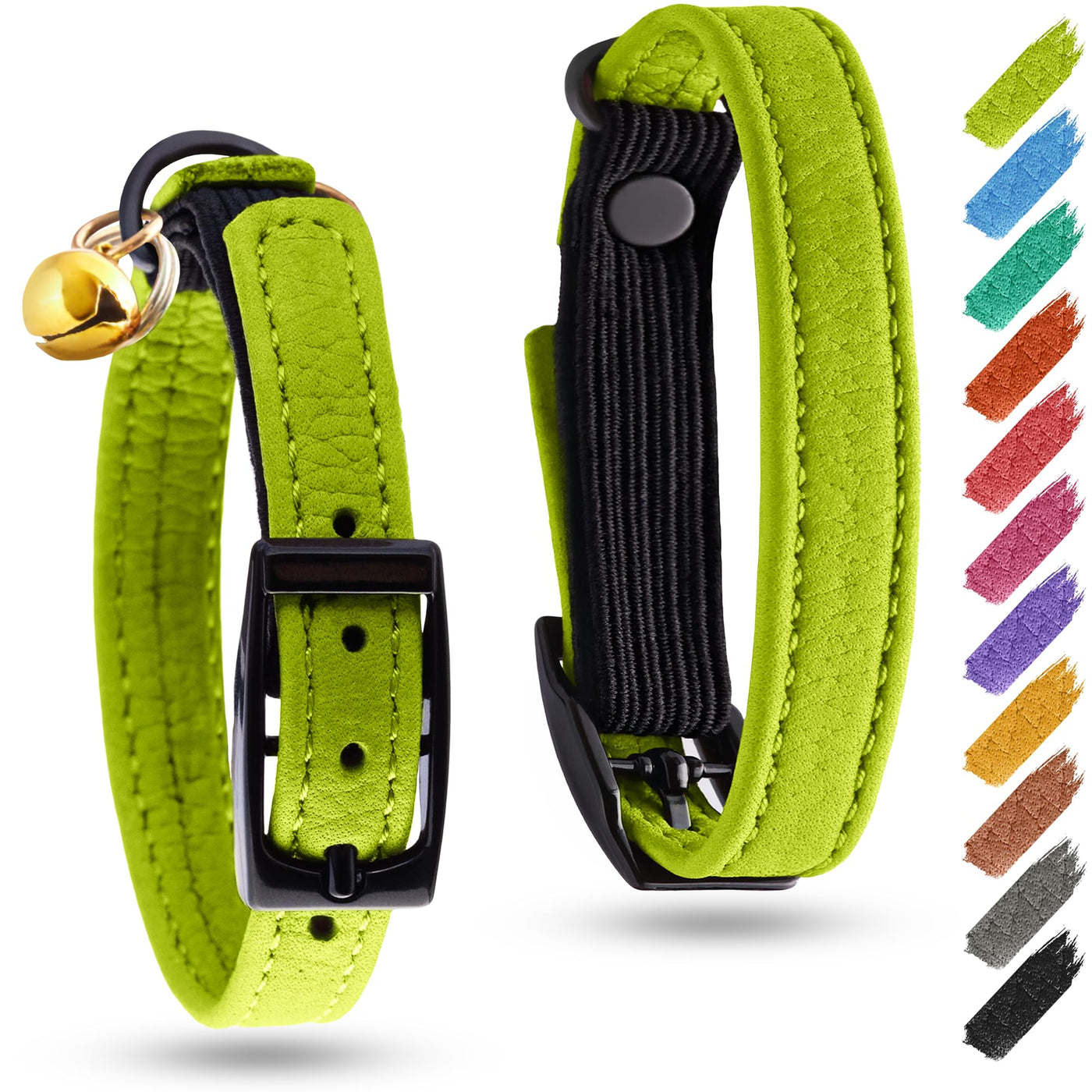 Leather Cat Collar With Bell And Safety Elastic Strap Breakaway Alternative For Small & Large Kittens, Stylish Pet Leather Colla