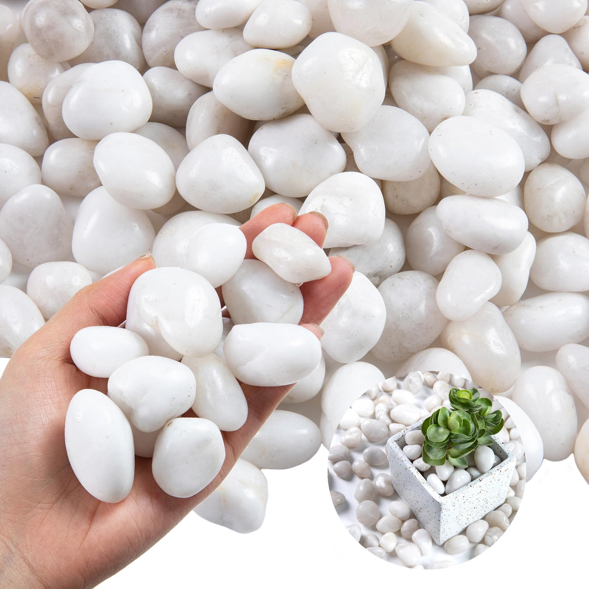 Lechloris 20lb White River Rock- High Polished Pebbles for Indoor Plants- Decorative Stones for Aquarium Fish Tank - White Rocks