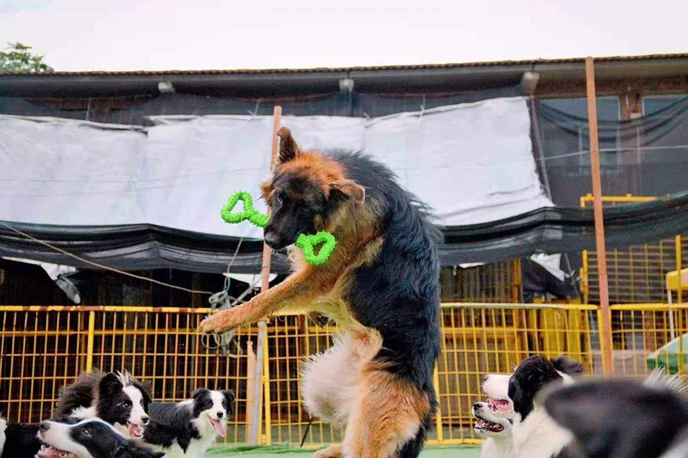 FEATURES - This dog chew toy is made of TPR, durable, safe and healthy for your dogs to play. - Convex points design meets the dogs chewing desire and it is more effective to clean dog’s teeth when chewing than other chew toys. - 13 inch and two handle design makes the toys interactive. You could play tug game with your dogs. Dogs not only need the toys, but also they need someone to play together. Improve the relationship with this chew toy. - Toys help to relieve stress, control and reduce dog’s destructive behavior.
