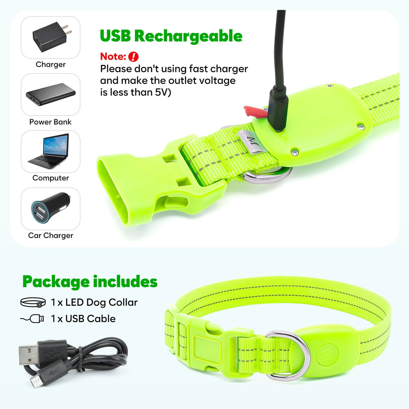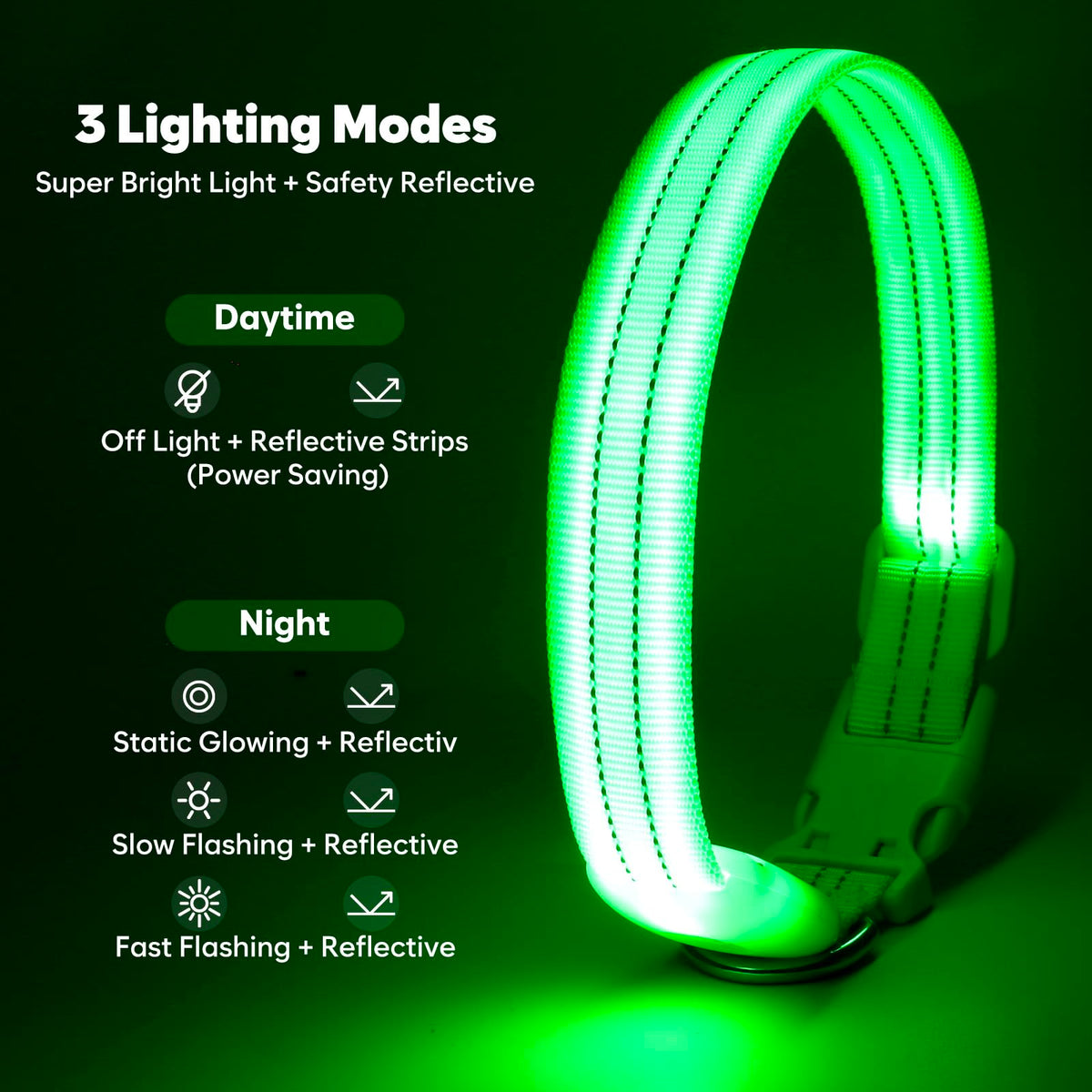 Led Dog Collar, Reflective Glow Collar For Night Safety, Usb Rechargeable, Waterproof, Flashing (Green, Medium)