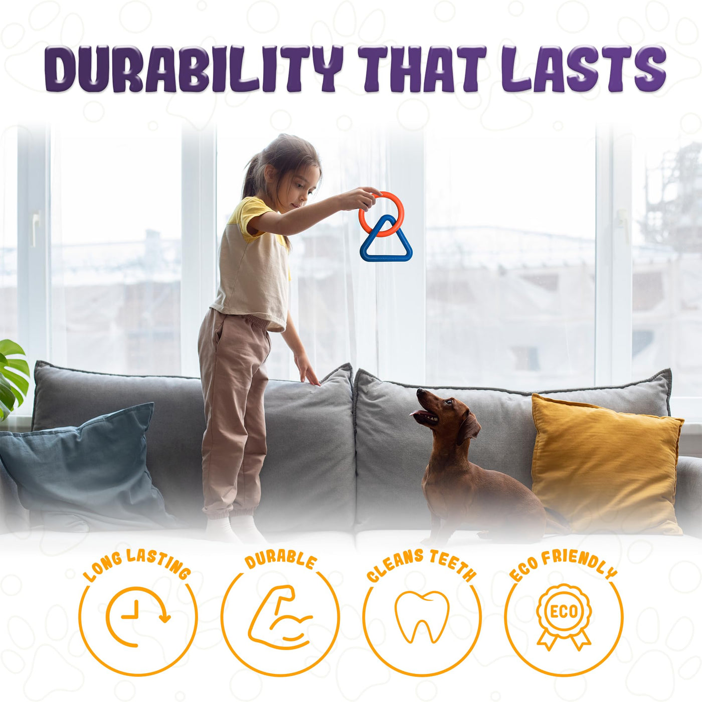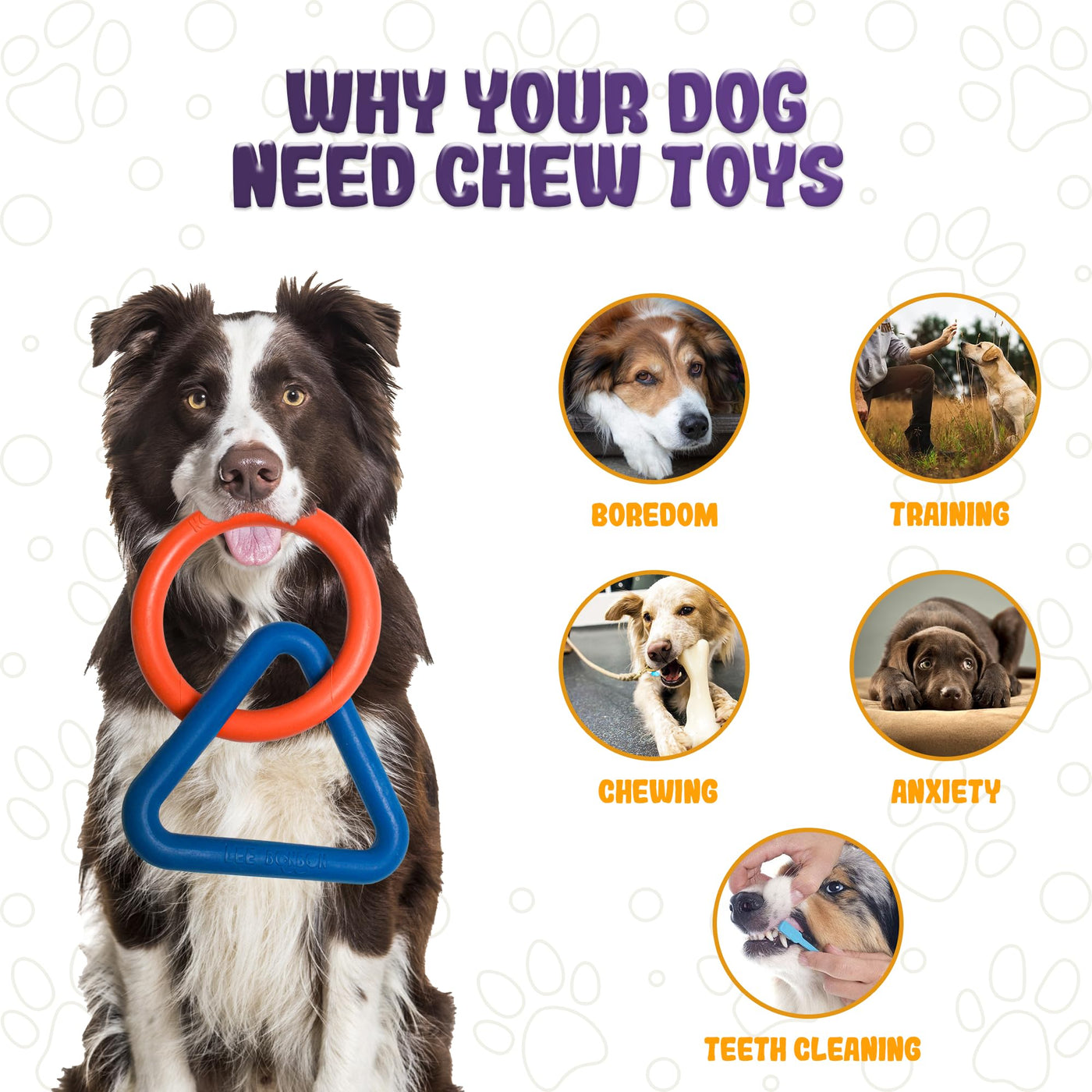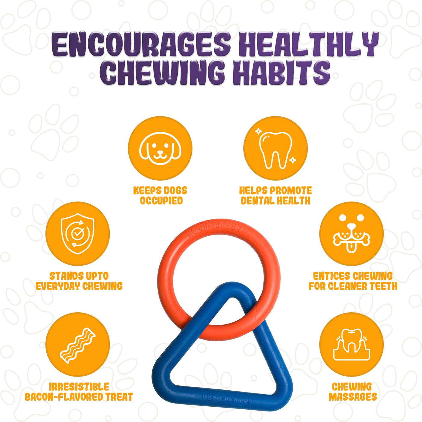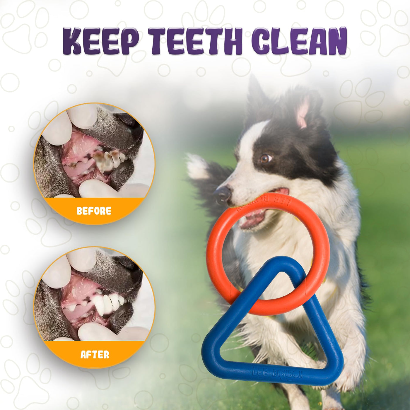 Indulge All Your Pets Senses Give Your Loyal Companion The Mental And Physical Stimulation He Craves With The Lee Bonbon Tug Of War Dog Toy For Aggressive Chewers. Designed For Your Small Medium And Large Breed Pup, This 2-Piece Rubber Dog Toy Is A Great Way To Exercise Your Dog While Building A Strong Bond When Enjoyed Together. It Also Piques Your Dogs Palate With Infusions Of Milk, Pineapple And Bacon Flavors. Available In Exciting Colors And Having Angles And Curves That Are Ideal For Soothing Chewing, Our Tough Dog Toy Offers A Welcome Distraction For Bored Pets Or Those That Experience Separation Anxiety. Safe, Eco-Friendly Design The Lee Bonbon Interactive Chew Toy For Aggressive Chewers Is Made Of Natural Rubber So It Is Strong, Non-Toxic And Gentle On Teeth And Gums. Molded With Rounded Edges And Curves, It Serves As A Puppy Teething Toy During Solo Play And Helps Older Dogs Remove Tartar For Fresher Breath And Dental Health. Its Strong, Snap-Resistant Construction Withstands Tugging Force As Your Pet Grips It In His Jaws And You Tug On The Other End. It Easily Washes By Hand With Mild Soap And Water, Making It Suitable As An Outside Dog Toy. There Is Never Any Stuffing To Clean Up Or Squeaker To Be Mindful Of. Your Satisfaction Is Our Top Priority Lee Bonbon Prides Itself On Offering Tough Dog Toys That Excite Your Pet And Enhance Its Quality Of Life. This Interactive Dog Pull Toy Consists Of An Interconnected Circle And Triangle In Eye-Catching Colors. With Straight, Curved And Angled Surfaces To Pull And Chew On, As Well As Tasty Flavors That Tantalize, It Is A Must-Have Addition To Large, Medium And Small Dog Toys. He Will Look Forward To Challenging Tug Games With You, Followed By Satisfying Chewing When You Are Away. To Redirect Your Pets Excess Energy, Add The Lee Bonbon Tug Toy To His Large, Medium And Small Dog Toys Today.