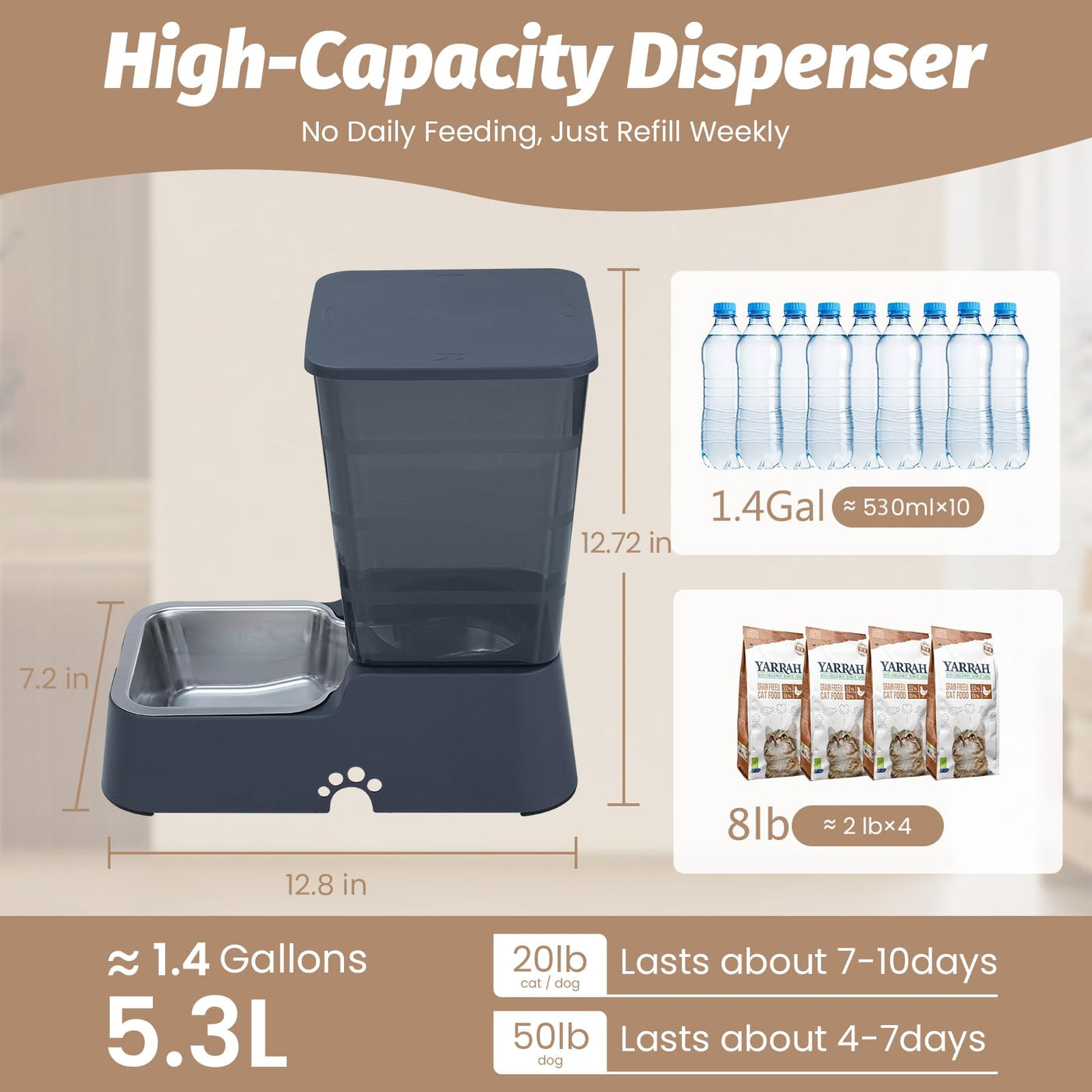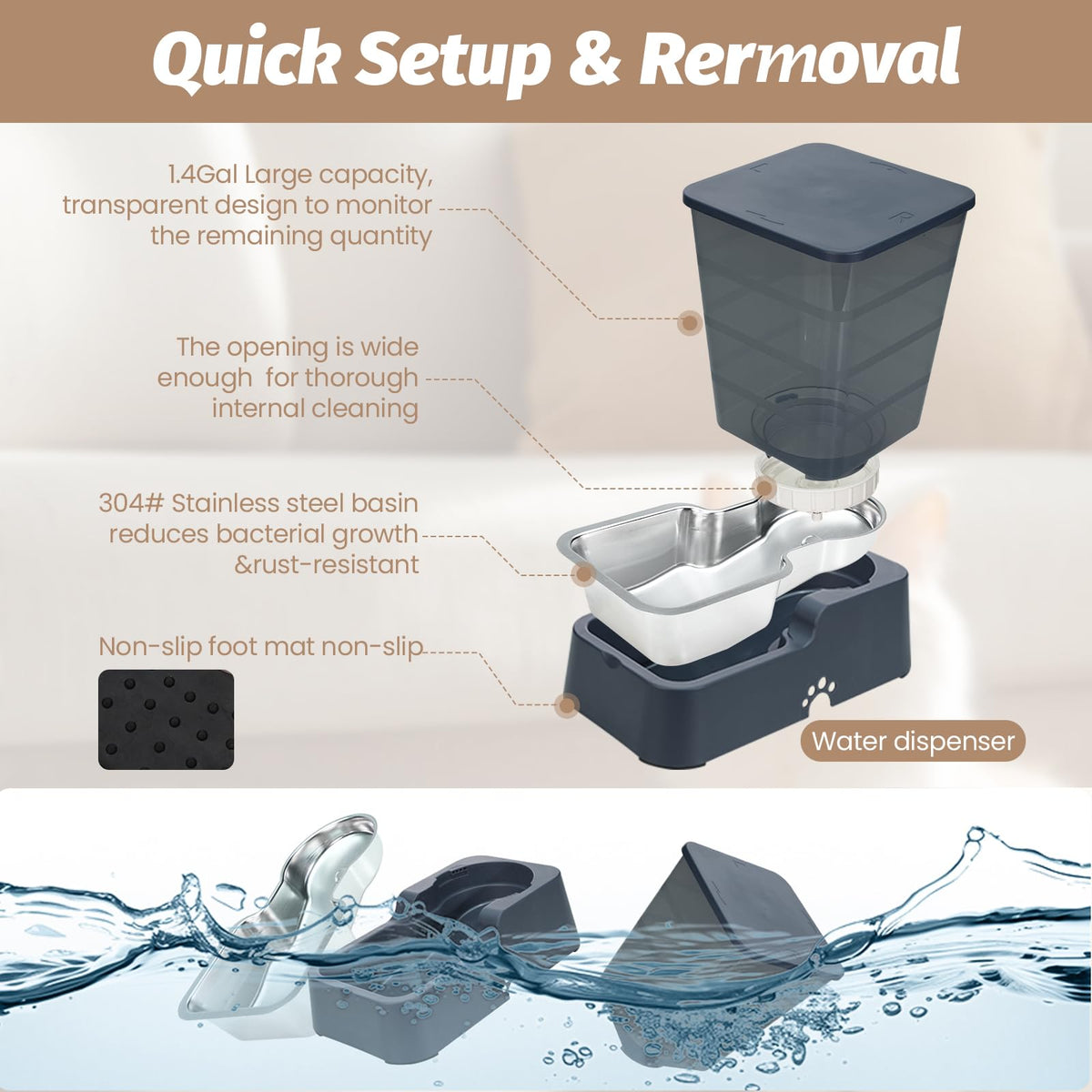 Leefele Automatic 5.4L/1.4Gal Pet Waterer, Automatic Dog Water Dispenser Gravity Stainless Steel Water Feeder, Large Capacity Fe