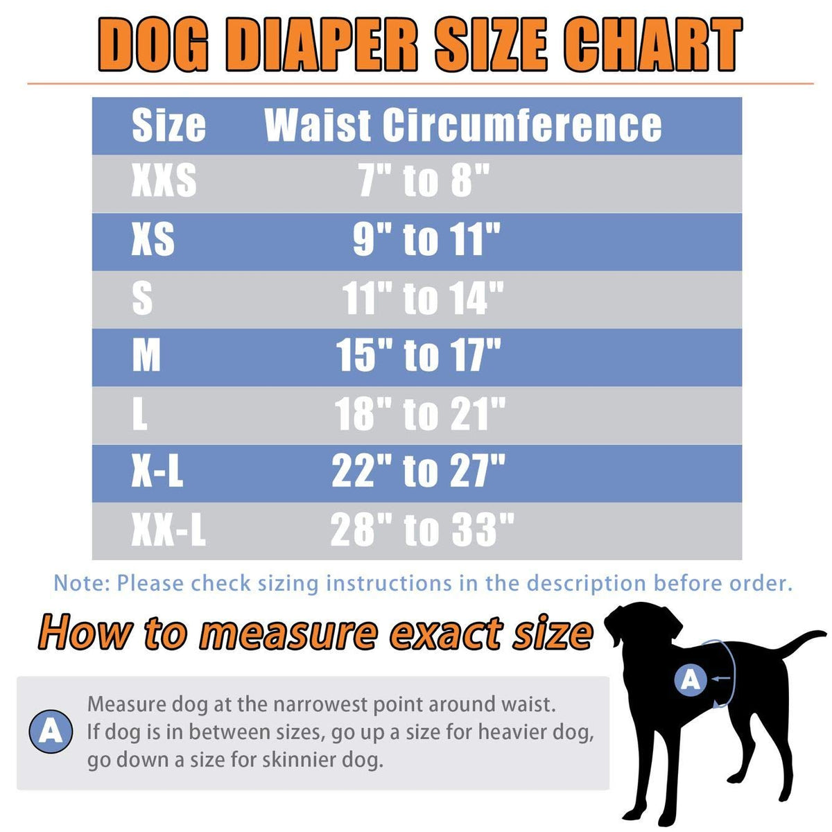 Leekalos dog diapers are designed for dogs with excitable urination and incontinent senior dogs. Dont guess your dogs size. Before order male diapers for dogs, please measure your dog 's waist right in front of the back legs to make a great fit, and loose some space when you measure your dog to make more comfortable. The hook&loop strip and the diaper with elasticity is enough long and adjustable to make maximum snug and a great fit for your dogs. Features: Easy to wear and take off. Keep your dog and home clean. Super cute, soft material. Make your dog become happy, let them love clean and less time on taking care of them.