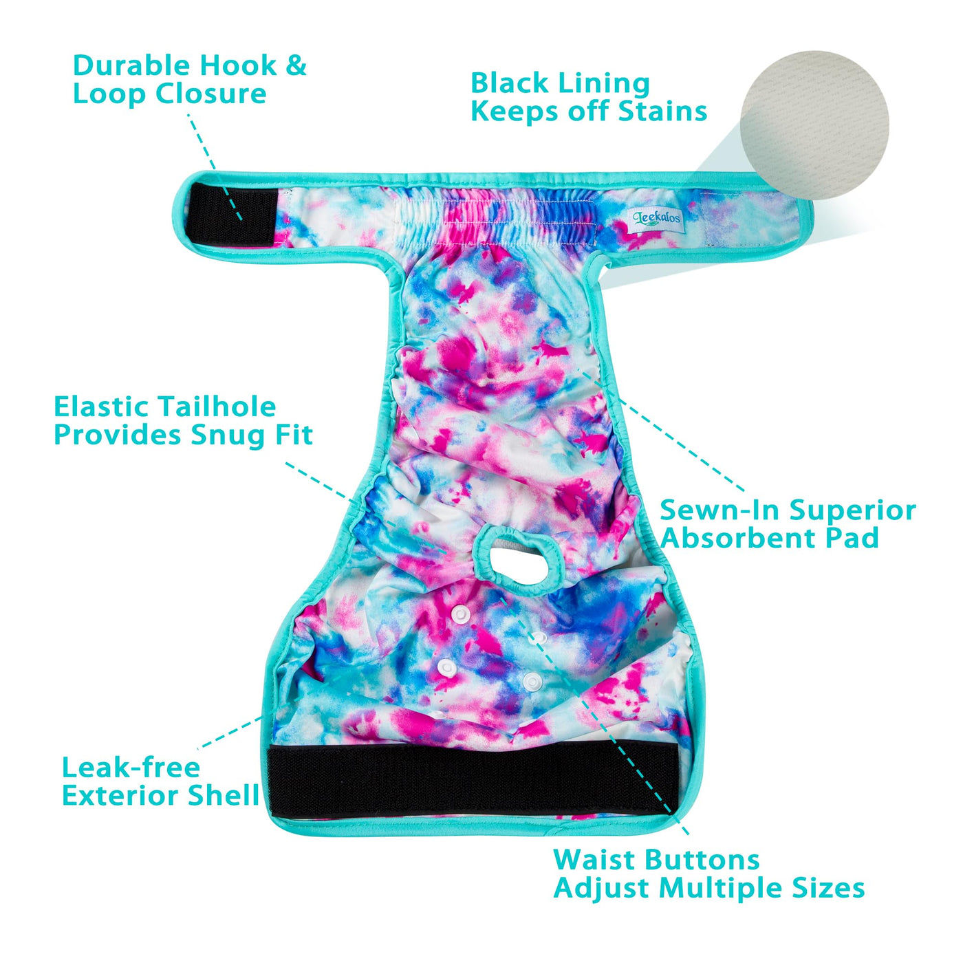 Leekalos Female Dog Diapers Are Designed For Dogs With Excitable Urination, Incontinent Senior Dogs, And Female Dogs In Heat. How To Use: Measuring Your Dog'S Waist To Ensure A Best Fit,Clean Your Dogs' Hindquarters With Wet Wipes Or Towel,Open The Hook&Loop Strips On Both Sides, Put Your Dogs Tail Through The Diapers Hole,Place The Front Of The Dog Diaper In The Dog' S Back And Slip The Other End Through The Dog'S Legs Until It Stops Moving,Grab One Side Of Hook&Loop Strip Up To Attach To The Opposite To Ensure Security And Make Your Dogs Not Easily Break Free From It.The Hook&Loop Strip And The Diaper With Elasticity Is Enough Long And Adjustable To Ensure Maximum Snug And A Best Fit For Your Female Dogs. Features: Easy To Wear And Take Off. Keep Your Dog And Home Clean. Super Cute, Soft Material Make Your Dog Become Happy, Let Them Love Clean And Save Your Time On Taking Care Of Them.