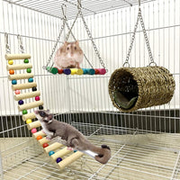 Features: 1, It is a natural straw warm cotton nest, making your pet have a comfortable nest. 2, Swings and ladders can let your pets have fun. 3, The product is made of safe materials which is environmentally friendly and safe. 4, Suitable for Hamster, Sugar Glider, Chinchilla, Squirrel, Parrot and other small pets.