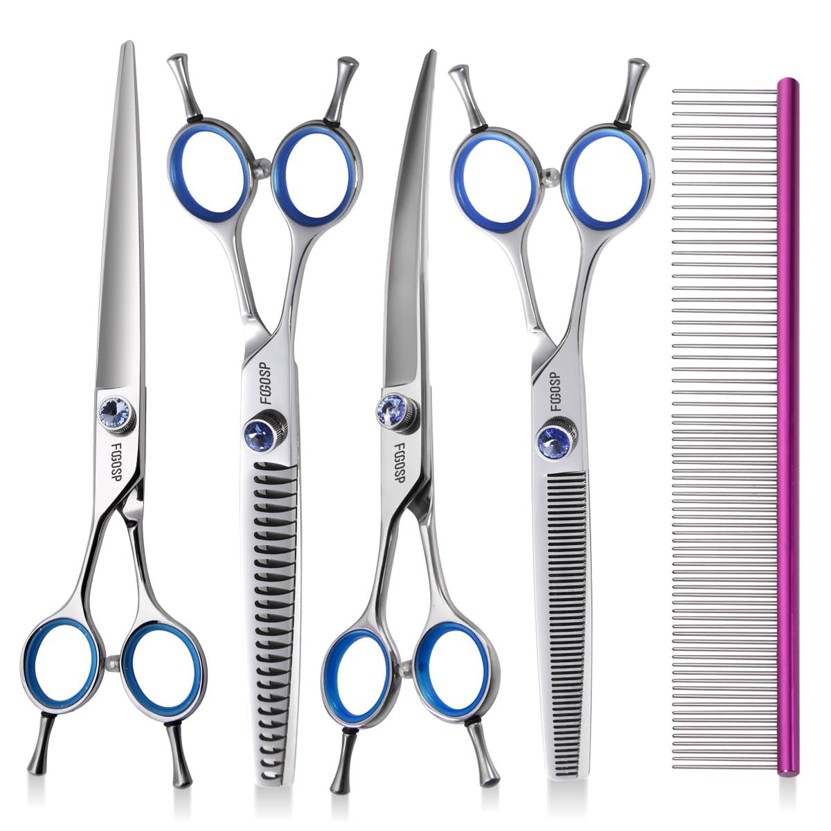 Fogosp Is A Professional Pet Grooming Scissors Manufacturer, We Focus On Hair Cutting Shears And Dog Grooming Scissors For Nearly 20 Years And We Do Every Detail Diligently. Fogosp Focus On High Quality Pet Grooming Shears, Each Pair Of Scissors Are Made Of High-Quality Stainless Steel, Professional Technical Master Manual Polishing Production, After More Than Three Times Of Careful Testing , To Ensure That Each Pair Of Scissors Delivered To Your Hands Are Perfect Products. Our Mission Is : Let Pets More Beautiful Choosing Fogosp, Let You Grooming Easier ! Fogosp Products : Straight Grooming Scissors, Curved Grooming Scissors, Thinning Grooming Scissors, Blender Scissors, Chunker Grooming Scissors, Rounded Scissors For Dog Grooming Face And Paws And So On.