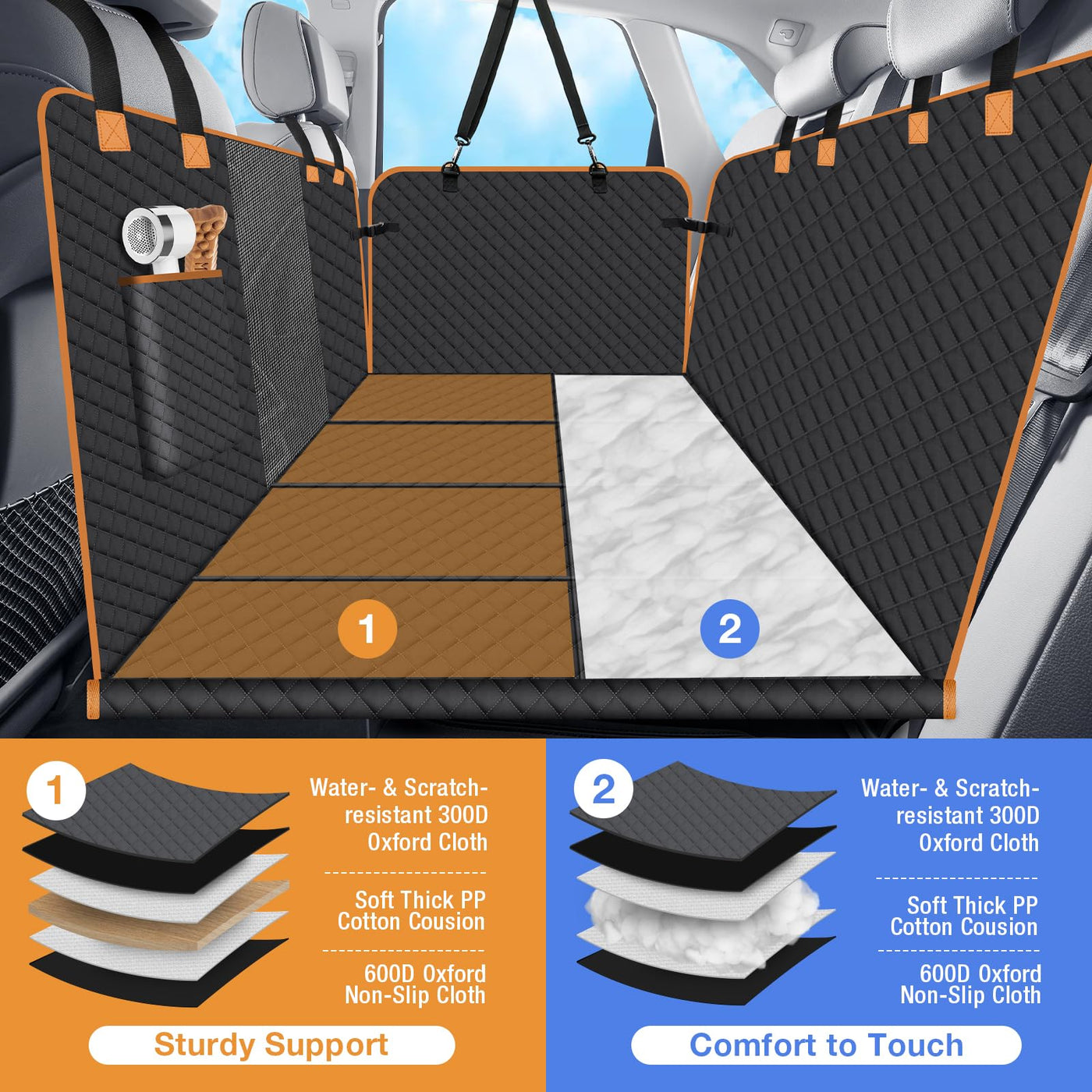 Lekespring Dog Car Seat Cover For Back Seat, Dog Car Bed Cover With Strong Hard Bottom 4 Panels, Car Back Seat Extender Hammock