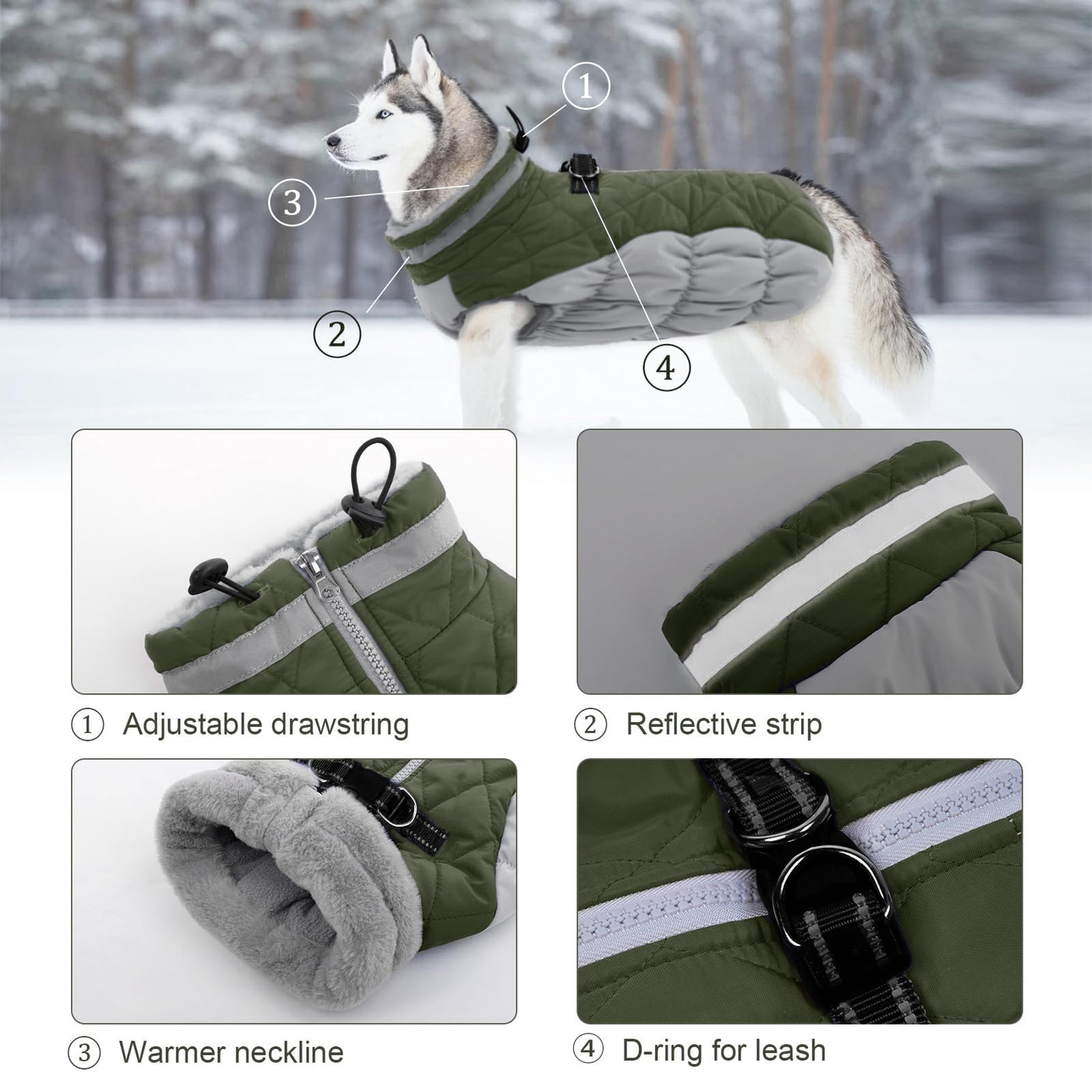 Features 1. Lattice Line Quilting Sewing Process, More Beautiful/Durable 2. Windproof And Water-Resistant Clothing Surface, Effectively Prevent Wind And Cold 3. Thick Fleece Inner And High Collar With Fur Keep Pets Warm In Cold Weather 4. Reflective Strip On The Collar Make It Safer At Night 5. 2 D-Rings On The Back Can Be Attached To A Leash, And There Is A Buckle To Prevent The Zipper From Slipping Off 6. The Adjustable Elastic Drawstring On The Collar And The Elastic Bands On Both Sides Of The Belly Gives The Dog The Most Comfortable Wearing Feeling 7. 4 Colors And 7 Sizes Available, There Is Always A Jacket That Suits Your Canine Friend 8. Hand Washable & Machine Washable Detail Material: Polyester, Fur Color: Orange, Pink, Neomint, Lime Size Chart: Xs:Chest Girth:35Cm/13.78''Neck Girth:26Cm/10.24''Back Length:25Cm/9.84'' S:Chest Girth:44Cm/17.32''Neck Girth:32Cm/12.59''Back Length:30Cm/11.81'' M:Chest Girth:53Cm/20.87''Neck Girth:38Cm/14.96''Back Length:36Cm/14.17'' L:Chest Girth:62Cm/24.40''Neck Girth:45Cm/17.71''Back Length:43Cm/16.92'' Xl:Chest Girth:76Cm/29.92''Neck Girth:52Cm/20.47''Back Length:51Cm/20.07'' 2Xl:Chest Girth:90Cm/35.43''Neck Girth:60Cm/23.62''Back Length:60Cm/23.62'' 3Xl:Chest Girth:110Cm/43.30Cmneck Girth:68Cm/26.77''Back Length:68Cm/26.77'' Note: If Your Dog Is A Large Chest, Has Long Hair, Or Is At The High End Of The Size, You May Order The Next Larger Size To Ensure A Comfortable Fit Package: 1 X Dog Coat