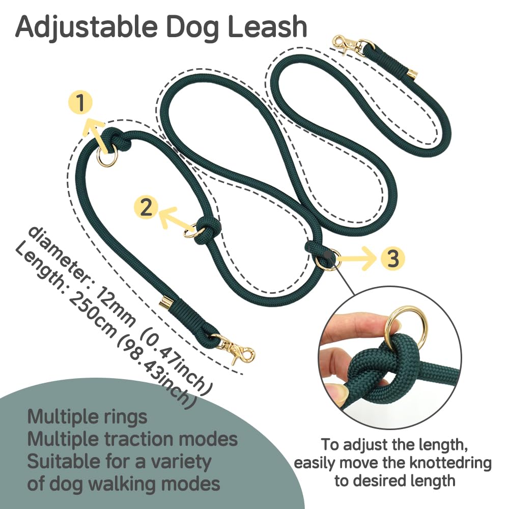 Elevate Your Pet'S Walking Experience With This Sophisticated Forest Green Rope Leash. Crafted From Durable Braided Rope Material, This Leash Features Elegant Gold-Tone Hardware And Expertly Tied Nautical-Style Knots That Add Both Style And Functionality. The Adjustable Design Allows For Multiple Wearing Configurations, While The Sturdy Clips Ensure Secure Attachment. Perfect For Daily Walks Or Training Sessions, This Leash Combines Premium Craftsmanship With Practical Durability. The Rich Emerald Tone Adds A Touch Of Distinction To Your Daily Pet Accessories, While The Thick Rope Construction Provides Confident Control And Comfort During Walks. The Thoughtful Design Includes Reinforced Ends And Strategic Knot Placement For Enhanced Handling And Control.
