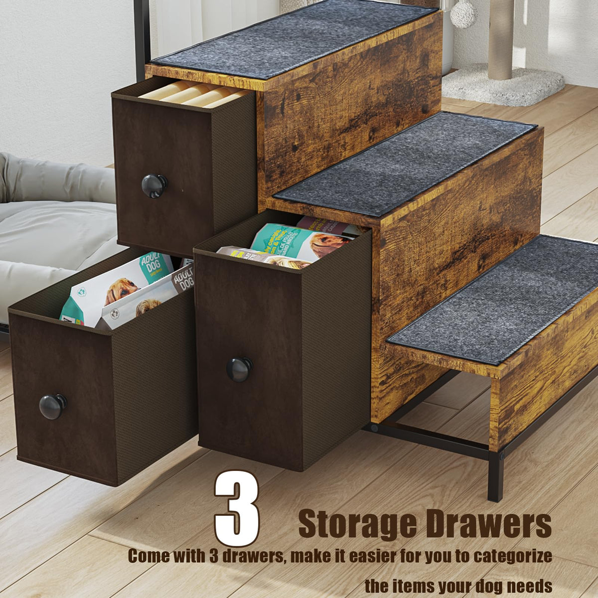 Lemberi Pet Bunk Bed With Stairs And Storage, Dogs/Cats Window Perch, Bedside Lounge Elevated Dog Bed Multi-Level Platform With