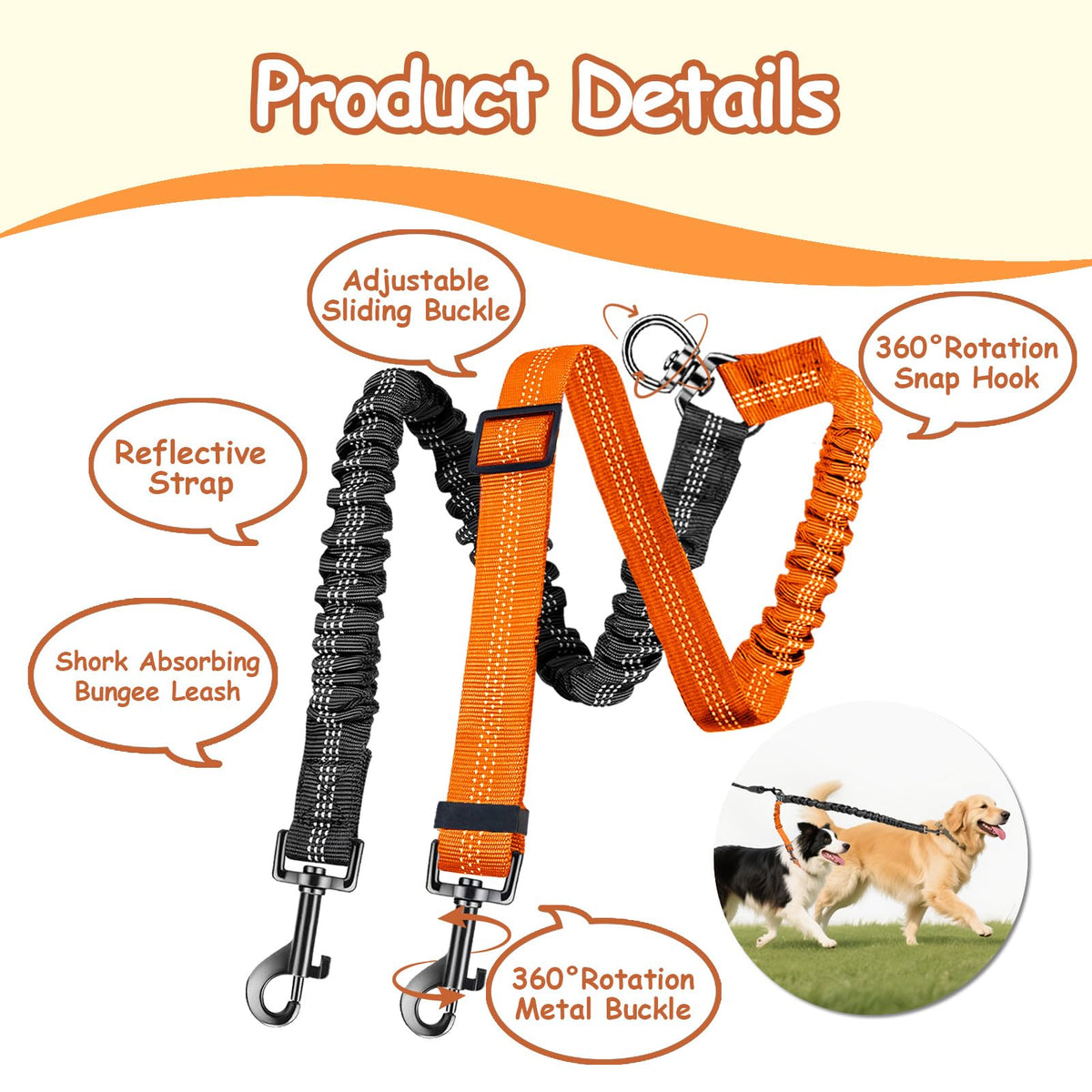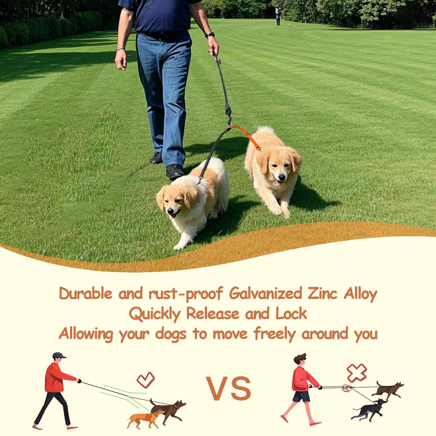 Leosasa Double Dog Leash - 360Swivel Tangle Free Splitter Attachment, 2 Dogs Multi-Functional Leashes, Dual Rope For Outdoor Wal