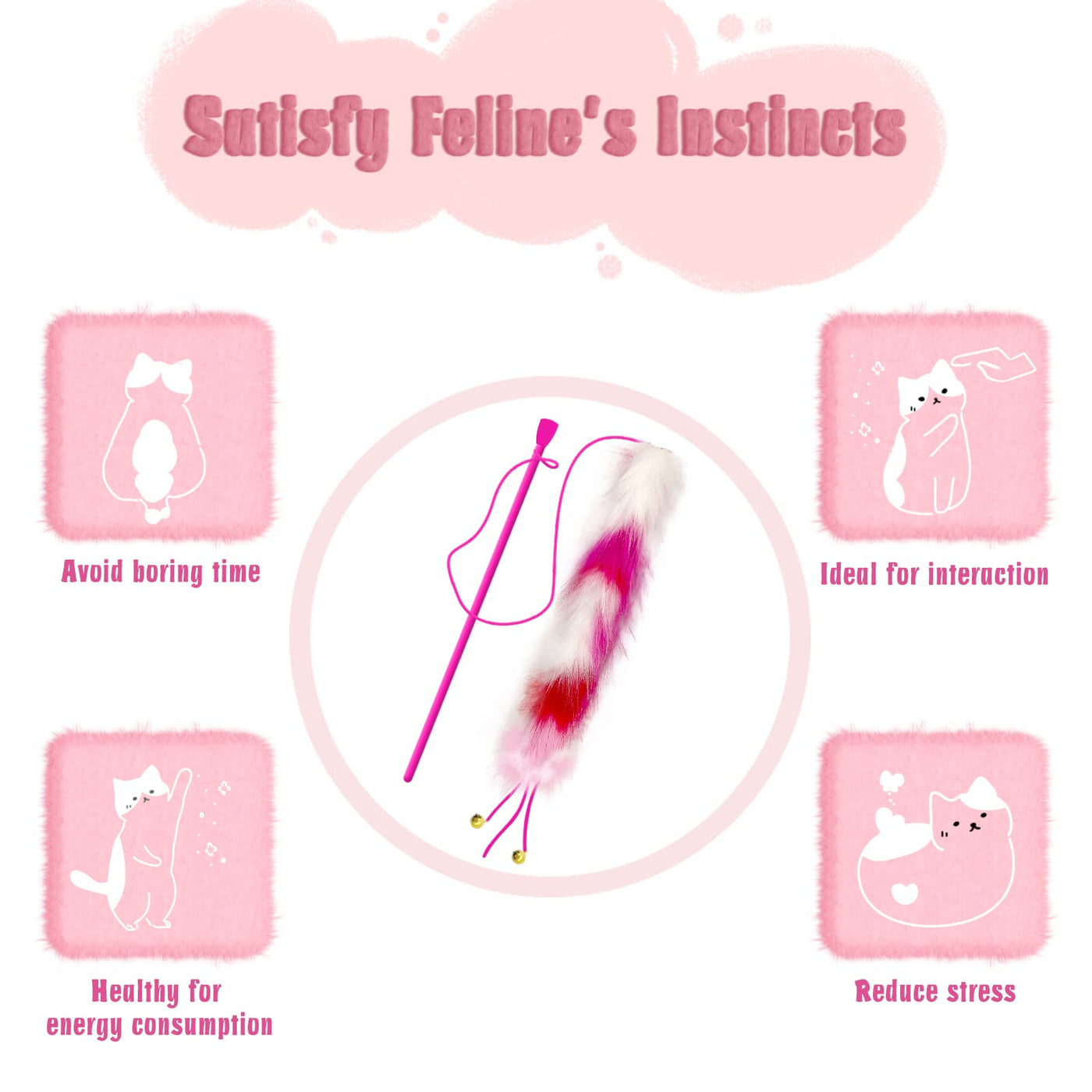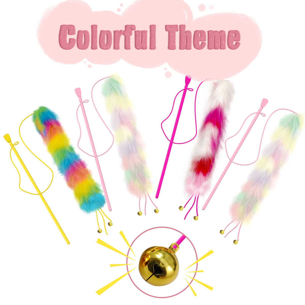 Lepawit 4 Pack Cat Wand Toy, Rainbow Cat Feather Toys With Bells, Teaser Wand With Soft Furry Tail, Interactive Toys For Indoor