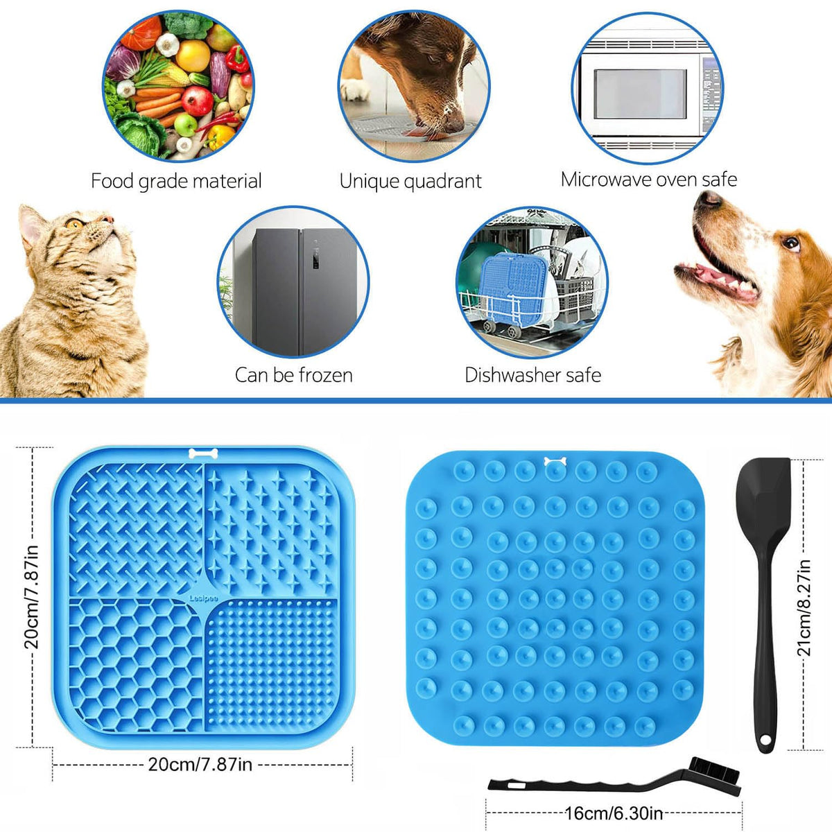 Lesipee Licking Mat For Dogs & Cats 2 Pack, Slow Feeder Lick Pat, Anxiety Relief Dog Toys Feeding Mat For Butter Yogurt Peanut,
