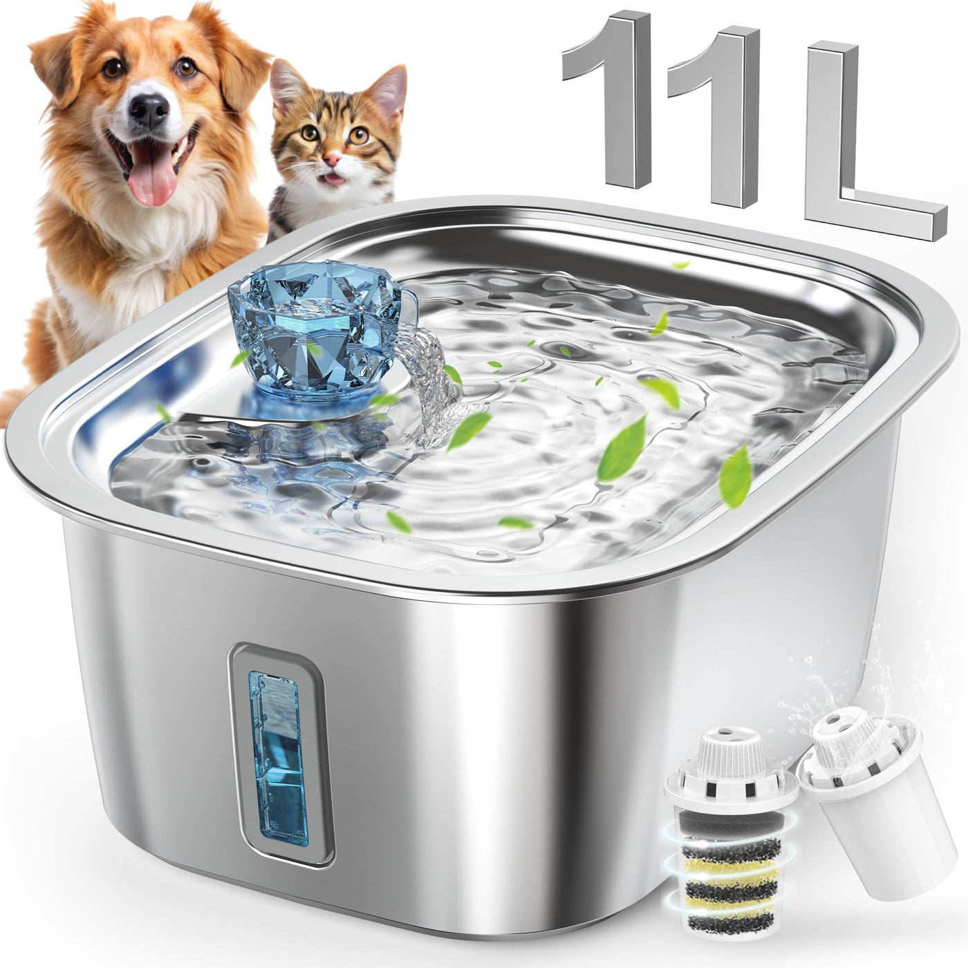 Lesotc 3 Galon Stainless Steel Dog Water Fountain For Large Dogs, Pet Water Fountain With 2 Filters, Automatic Dog Fountain Dog Water Bowl Dispenser Indoor, Quiet Pump, Dishwasher Safe