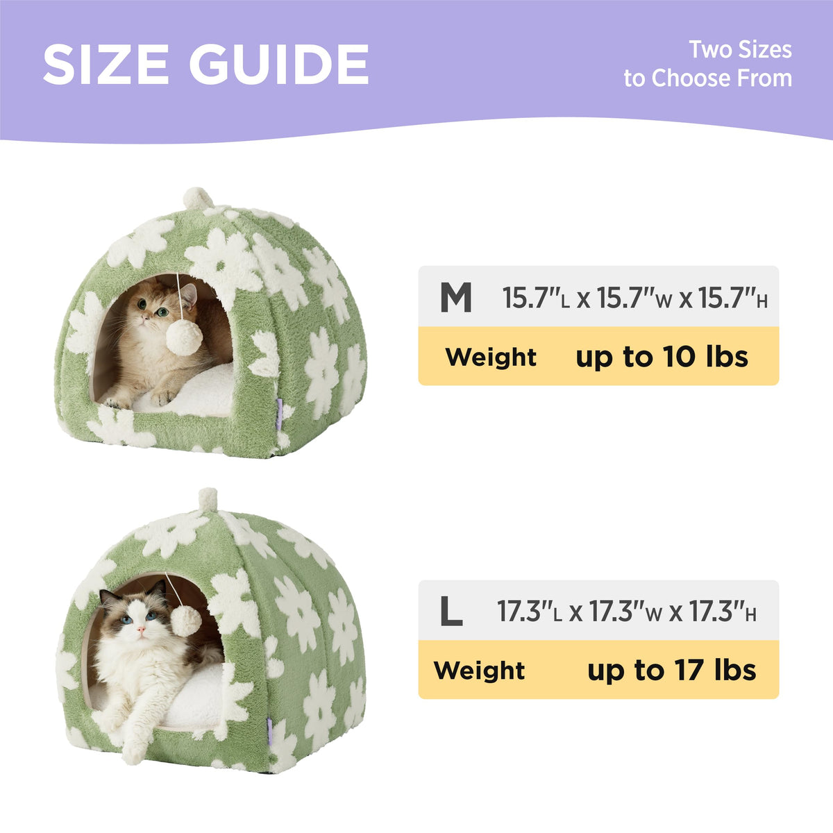 Lesure Cat Beds For Indoor Cats - 2 In 1 Cat Cave For Large Cats And Small Pets, Foldable Cat House Tent With Removable Washable Cushioned Pillow, Cat Hideaway With Non-Slip Bottom, Green, 17.3 Inches