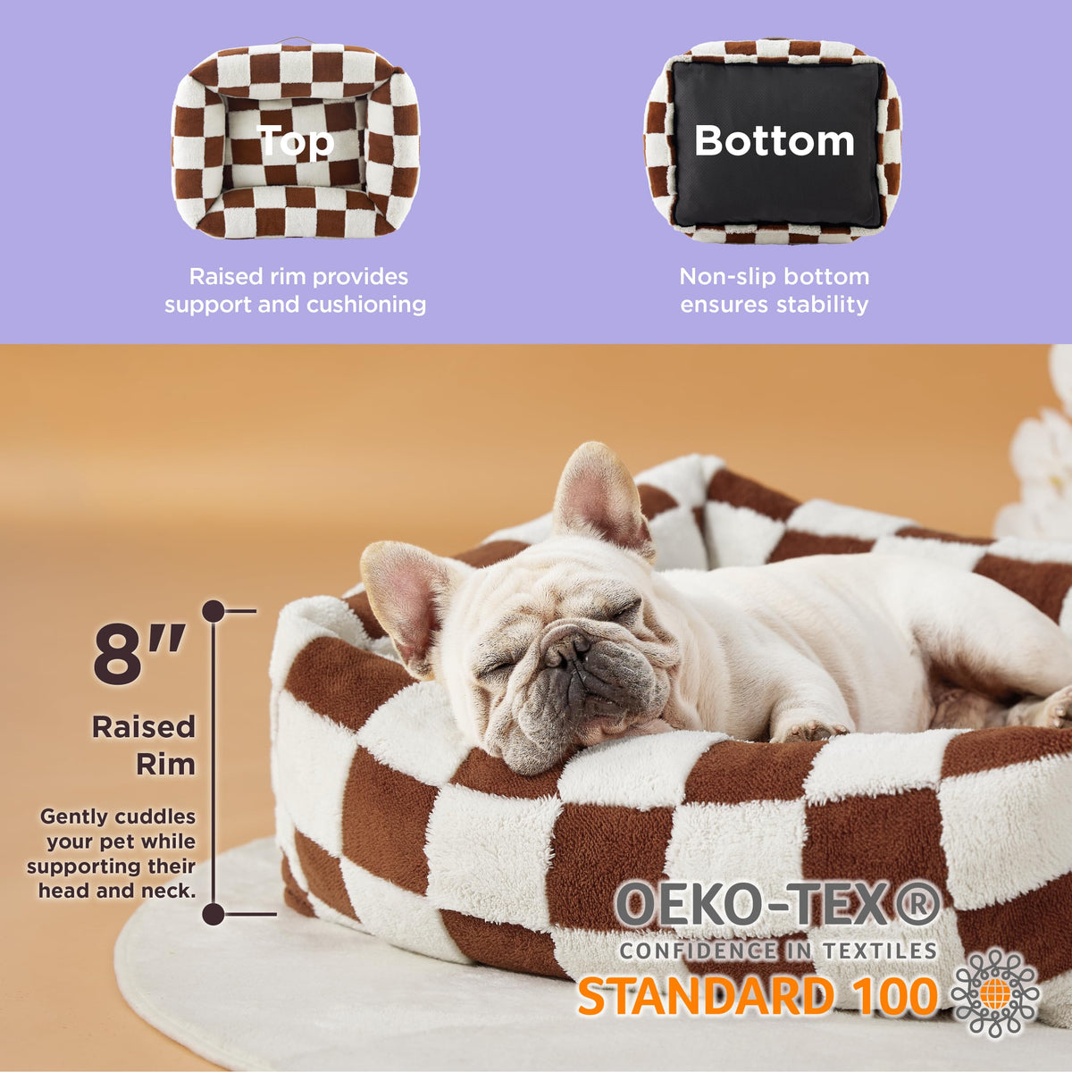 Lesure Cute Dog Bed For Medium Dogs - Washable Pet Beds,Cozy Rectangle Orthopedic Sofa With Jacquard Shaggy Plush & Anti Slip Bo