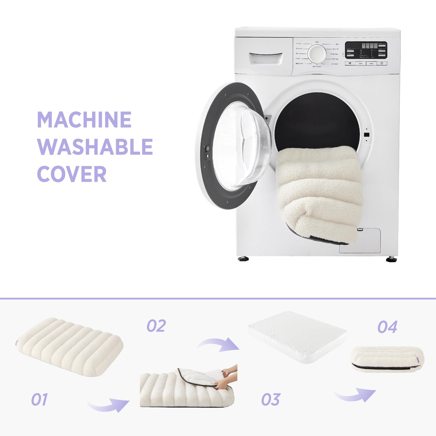 Lesure Cute Orthopedic Dog Bed For Small Dogs, Waterproof Chic Flat Pet Beds With Removable Washable Cover, Fuzzy Thick Egg Crate Foam Pet Mat For Indoor Use (24'' X 18'', Cream)