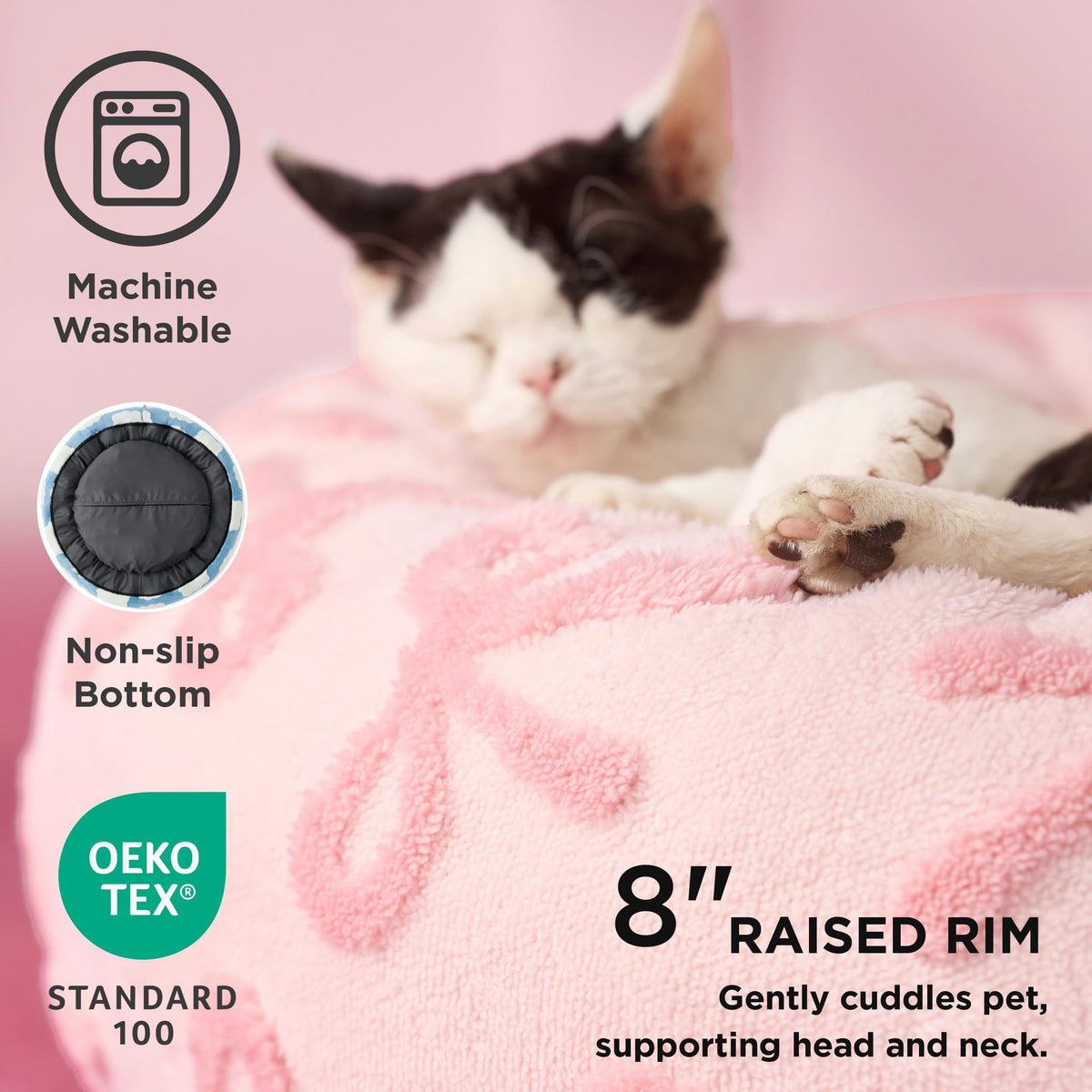Lesure Donut Cat Beds For Indoor Cats - Round Small Dog Bed Calming Pet Beds, Cute Modern Beds With Jacquard Shaggy Plush & Anti Slip Bottom, 20 Inch, Pink Taffy