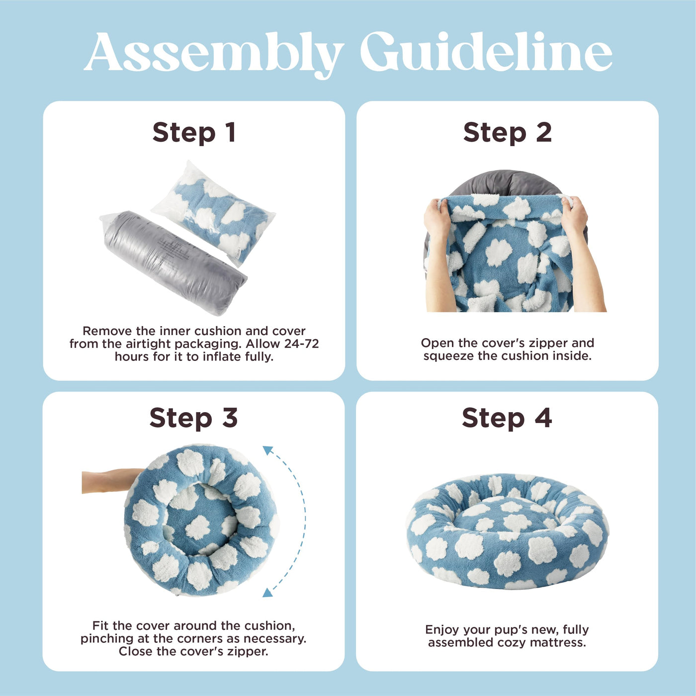 Lesure Donut Medium Dog Bed - Round Cat Beds For Indoor Cats Calming Pet Beds, Cute Modern Beds With Jacquard Shaggy Plush & Anti Slip Bottom, 30 Inch, Blue