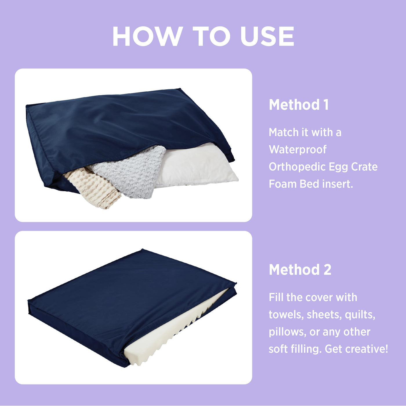 Lesure Water-Resistant Dog Bed Cover - Medium Washable Replacement Cover For Pet Mat 30X20X3 Inches, Navy