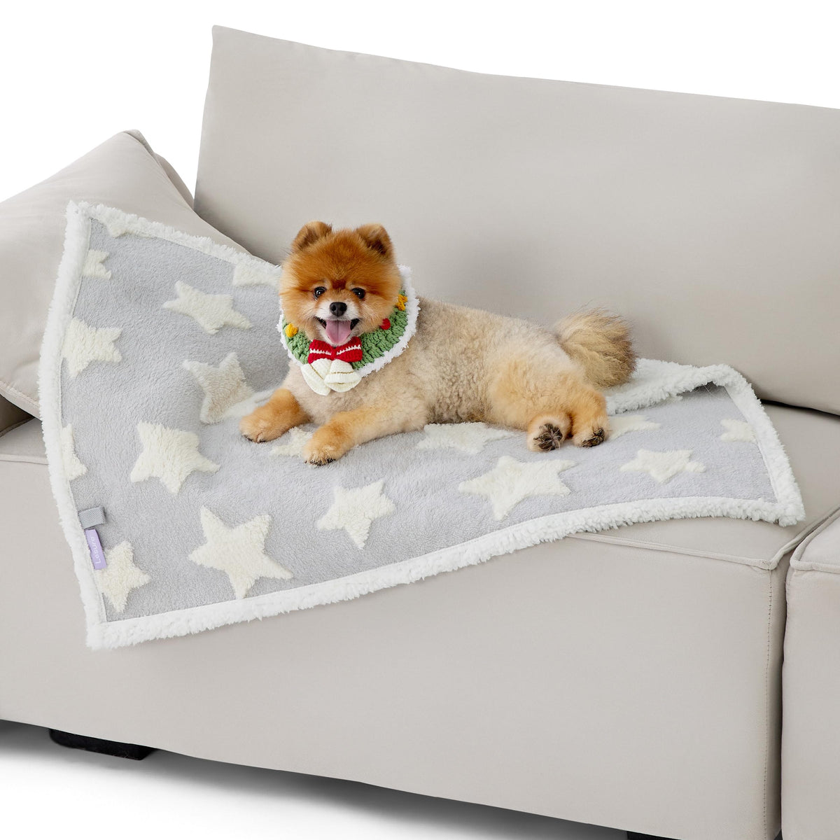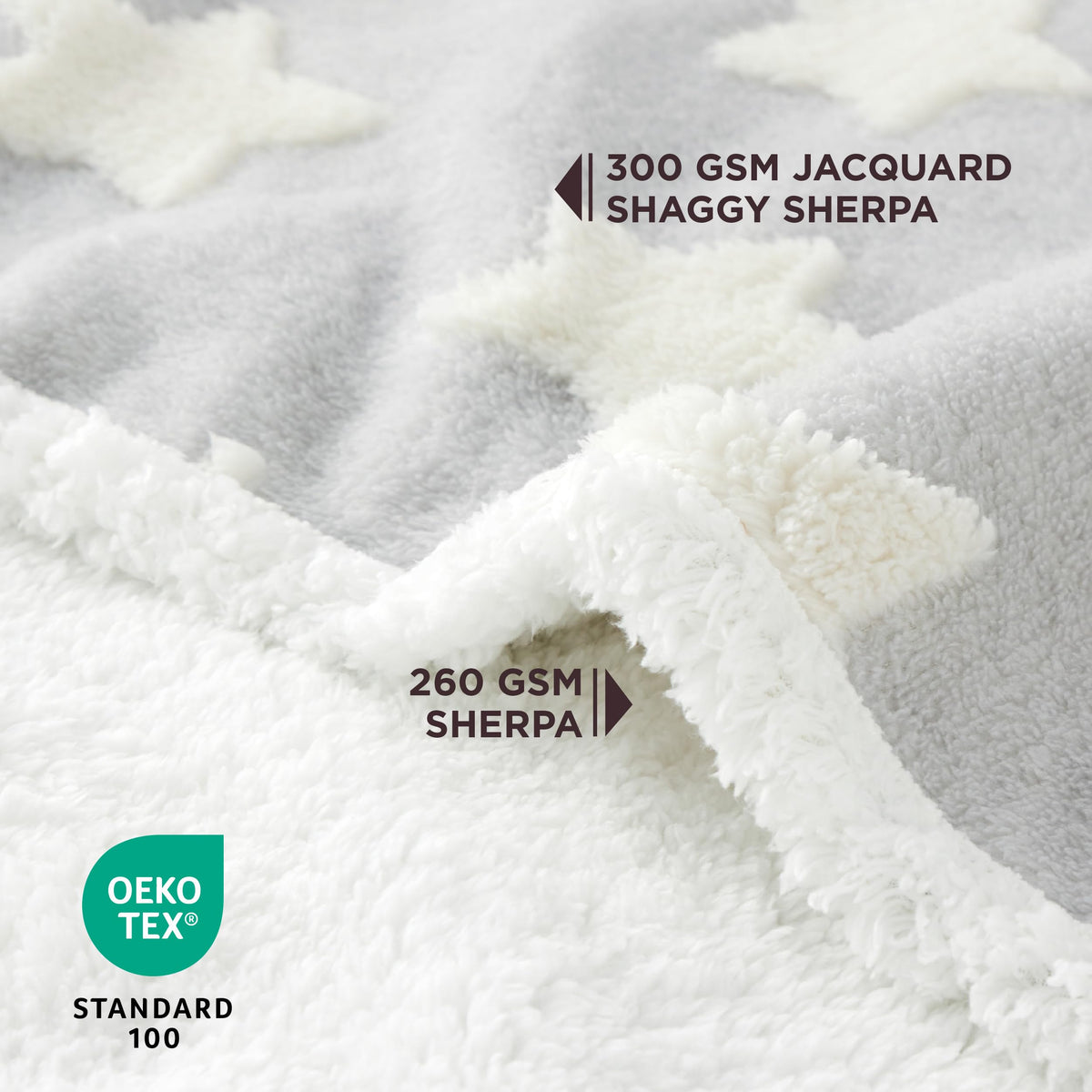 Lesure Waterproof Puppy Blanket For Small Dogs - Washable Double Sided Dog Blankets With Warm Jacquard Shag And Soft Sherpa Fleece, Pet Cat Blanket For Couch Protection, 3D Textured Star, Grey