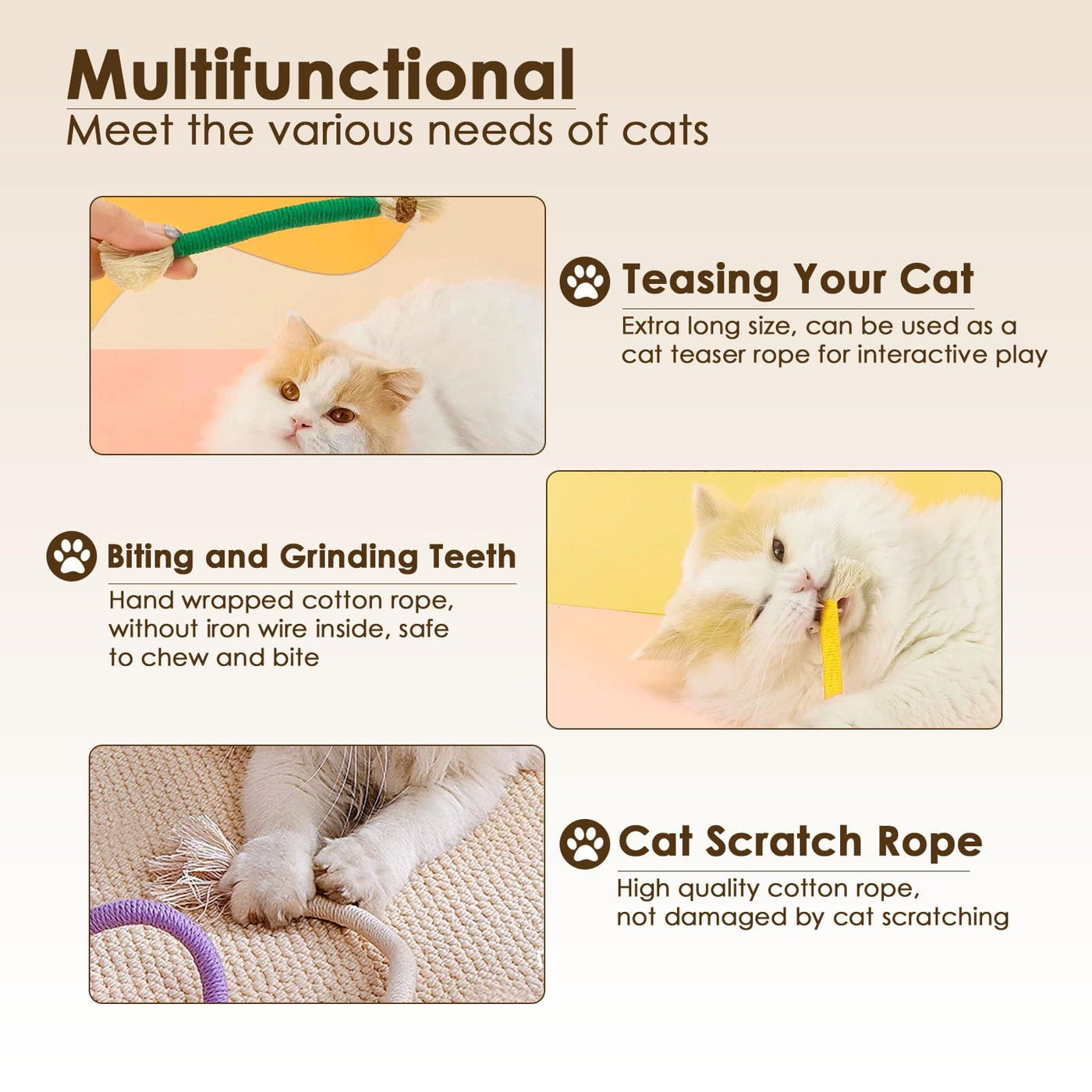 Letalong 3 PCS Cotton Rope Cat Toys for Indoor Cats, Interactive Cat Rope Toys with Silvervine Fruit for Cats and Kittens, Handm