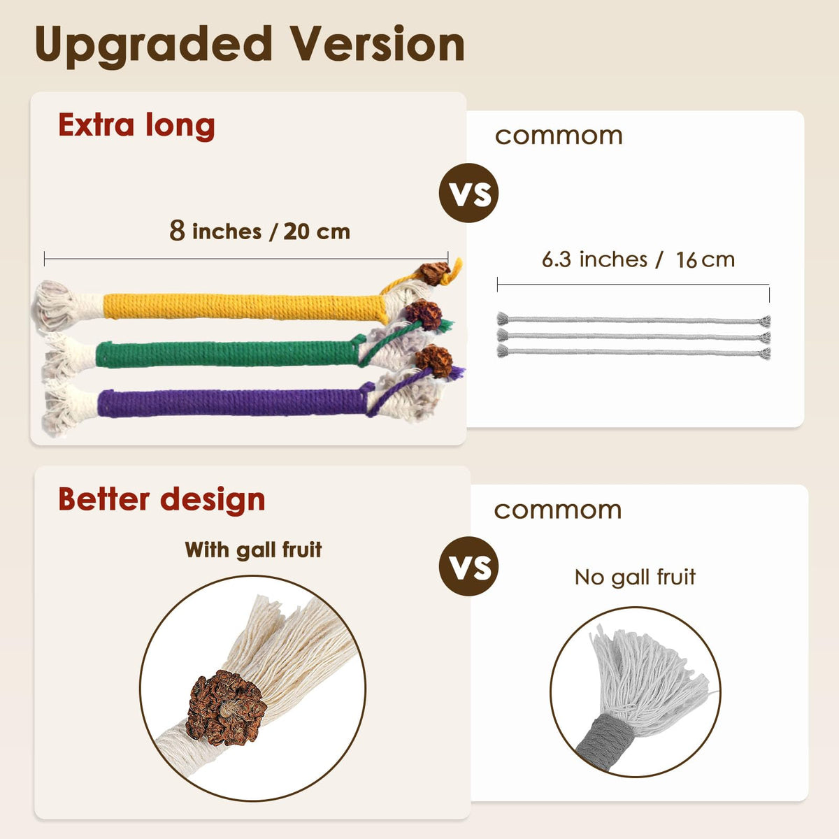 Cat Toys with Catnip. These cat toys are filled with natural catnip and gall fruit (fruit of silvervine) , which will attract the cats attention even more to engage them in solo playing or bonding with each other. Catnip Toys for Cats. Catnip toys size is 8 inches, proper size for cats to kick or scratch, and you can use this cat rope toys to bond with your cats. Gift for Cats Kittens Kitty. Catnip rope toys are great gift choice for cat birthday holiday present etc. Cat Toys for Indoor Cats. Package including: 3 x cat catnip rope toys.