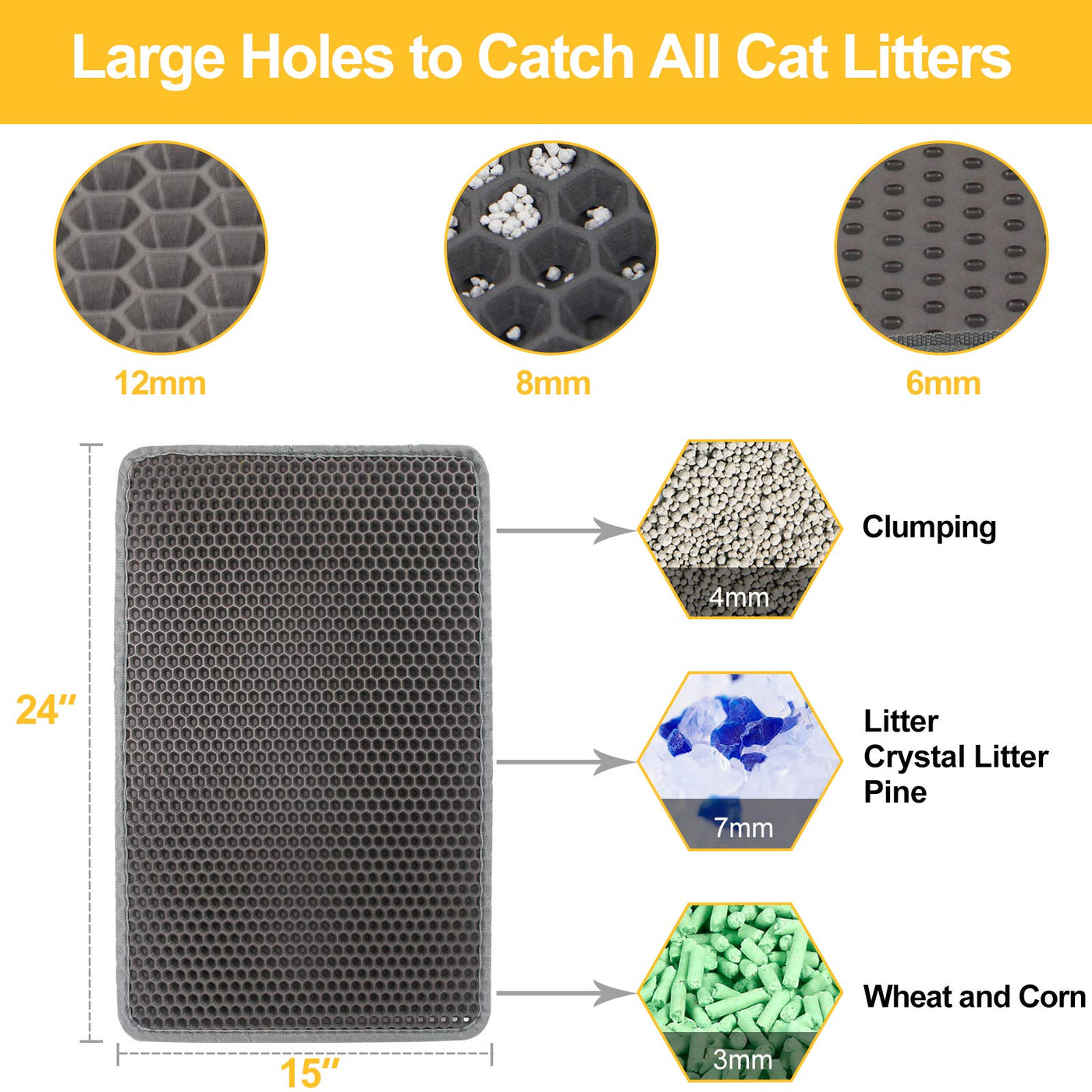 Letoo Cat Litter Mat Grey Trapping For Litter Box, No Slip & Large, Urine & Waterproof, Honeycomb Double Layer Anti Tracking Kitty Mats, No Phthalate, Washable Easy Clean (24' X 15', Grey)