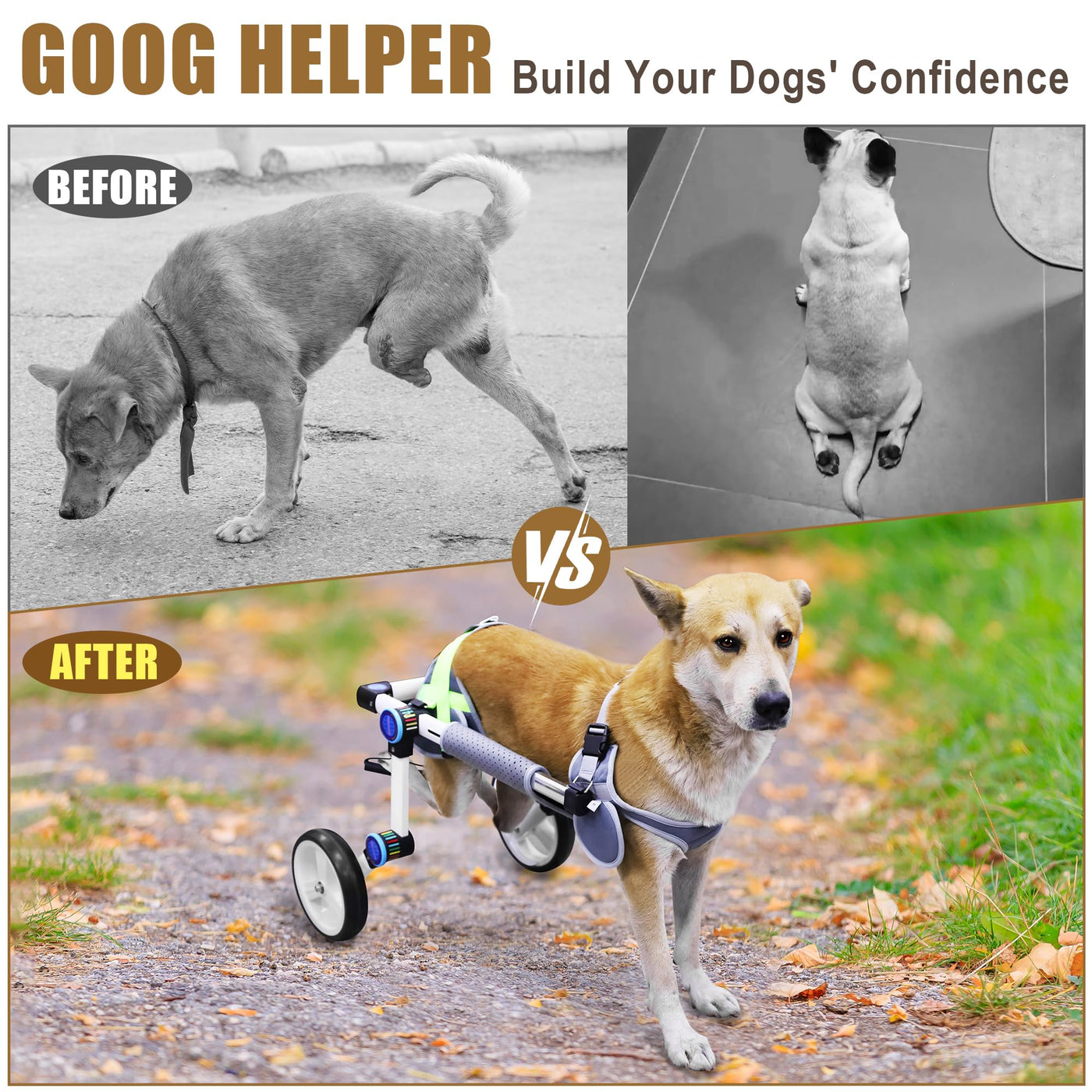 LetPetRun Dog Wheelchair, Adjustable Dog Wheelchair for Back Legs, Stable Dog Cart for Disabled Hind Legs, Help Small Pets with
