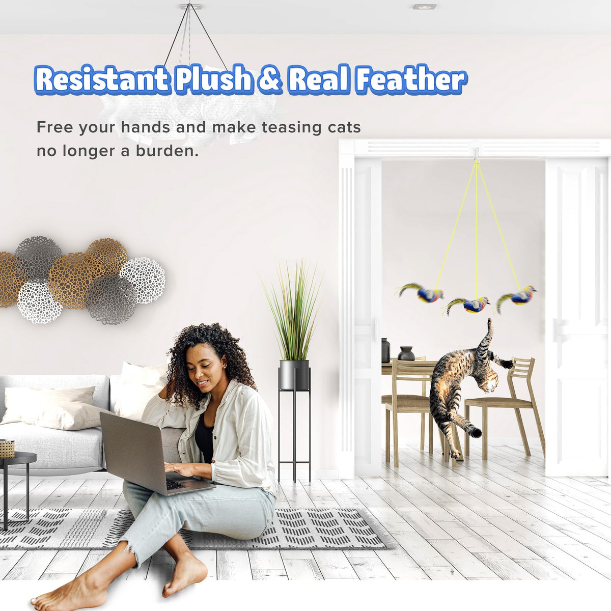 LEWISER Cat Toys Hanging Bird, Retractable Cat Teaser Toy, Vivid Chirping, Interactive Catnip Toys for Indoor Cats Kitten Play C