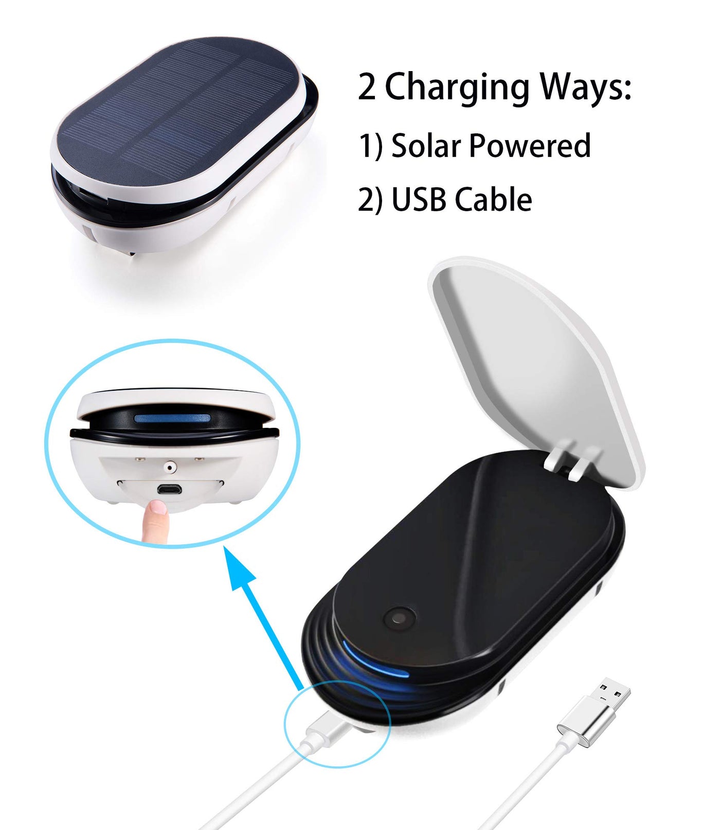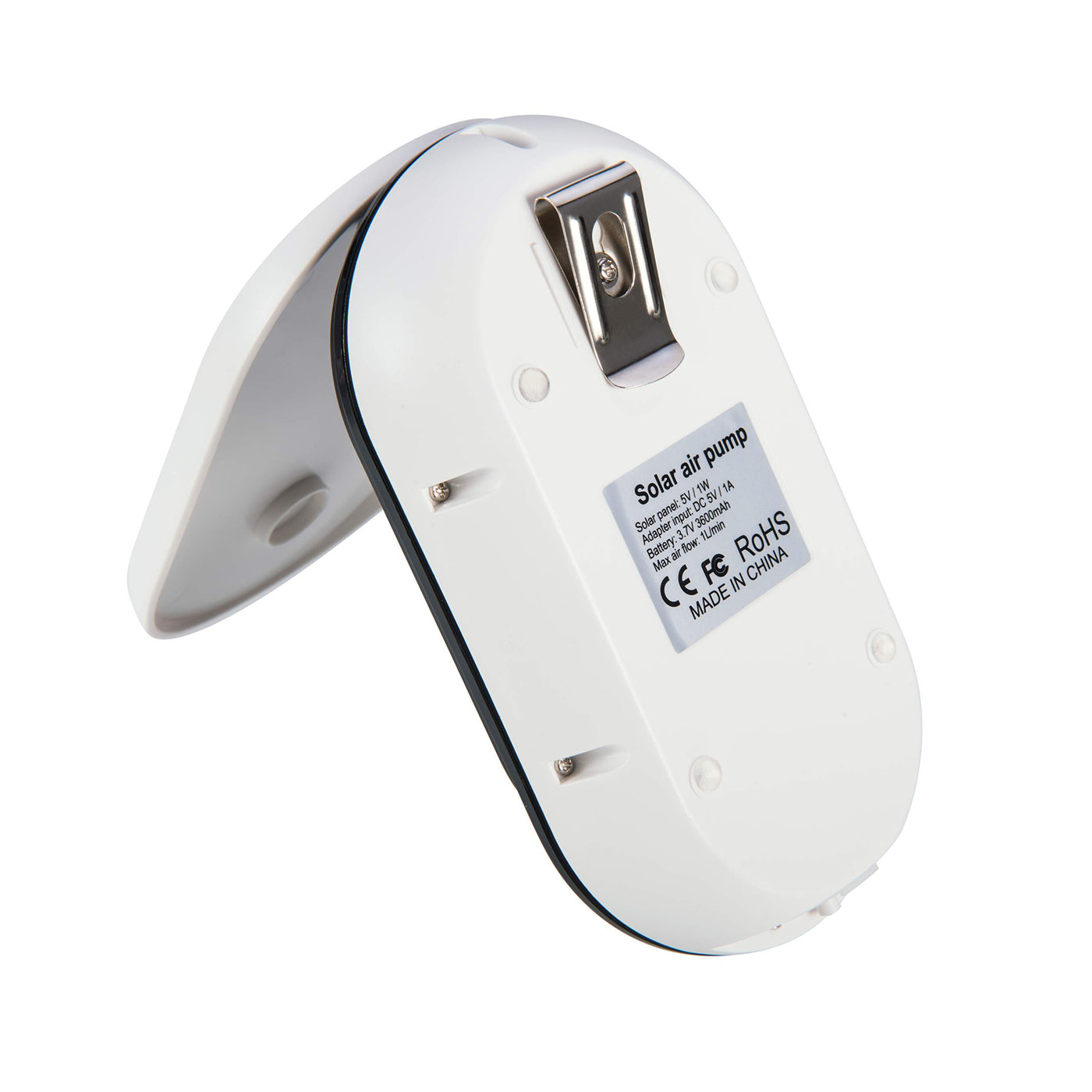 3 working modes: High Setting, Low Setting, Cycles On and Off (10 seconds on/10 seconds off) - maintain optimal oxygen level and keep fish healthy | 2 charging ways: Solar powered, USB cable - versatile for both outdoor and indoor use | Long working time: Built-in battery provides up to 96 hours of operation after full charge | Sturdy metal clip: Easy to attach, holds firmly in place | Includes 100 air tubing roll: Cut to desired length for each air stone | Adjustable charging angle: 60
